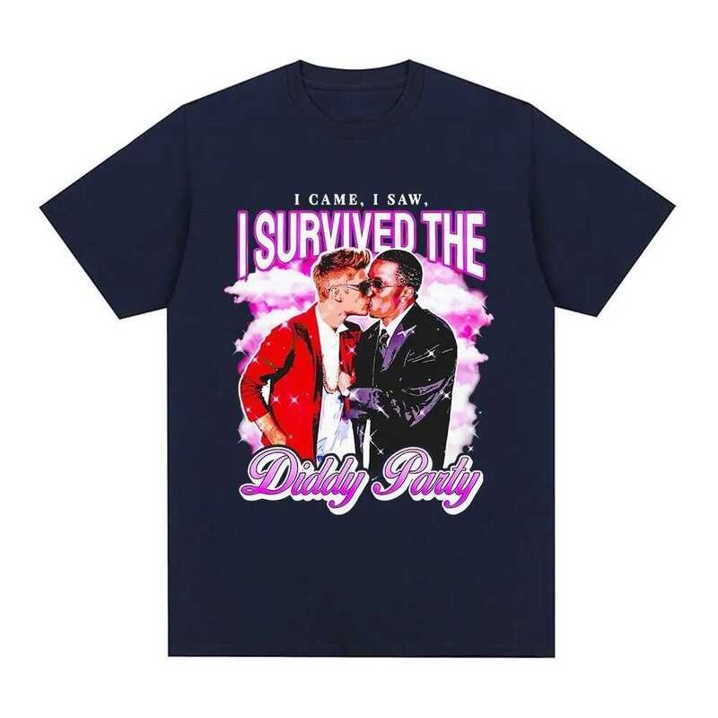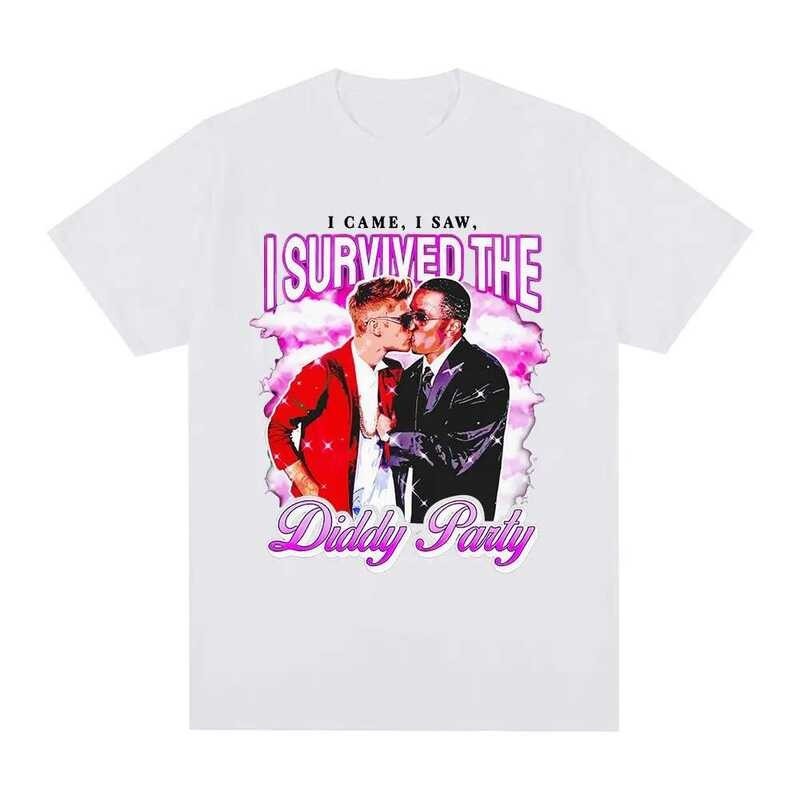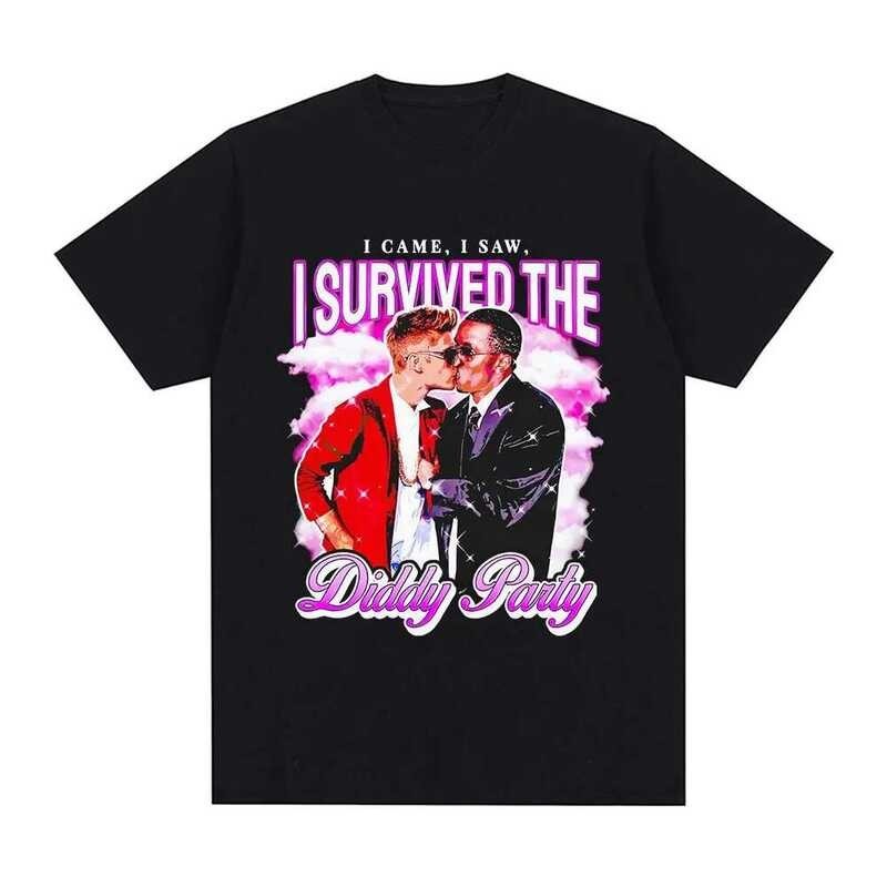 I Survived The P. Diddy Party Funny Meme T Shirt Men Women Cotton Cozy Oversized T-shirts Fashion Vintage Short Sleeve T Shirts