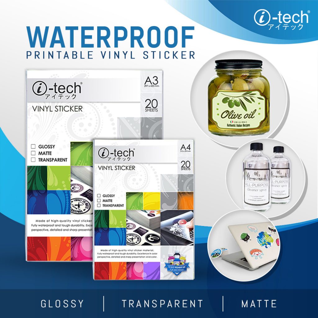 I-TECH Printable Inkjet Vinyl Sticker Waterproof A4 20sheets ( GLOSSY MATTE TRANSPARENT )