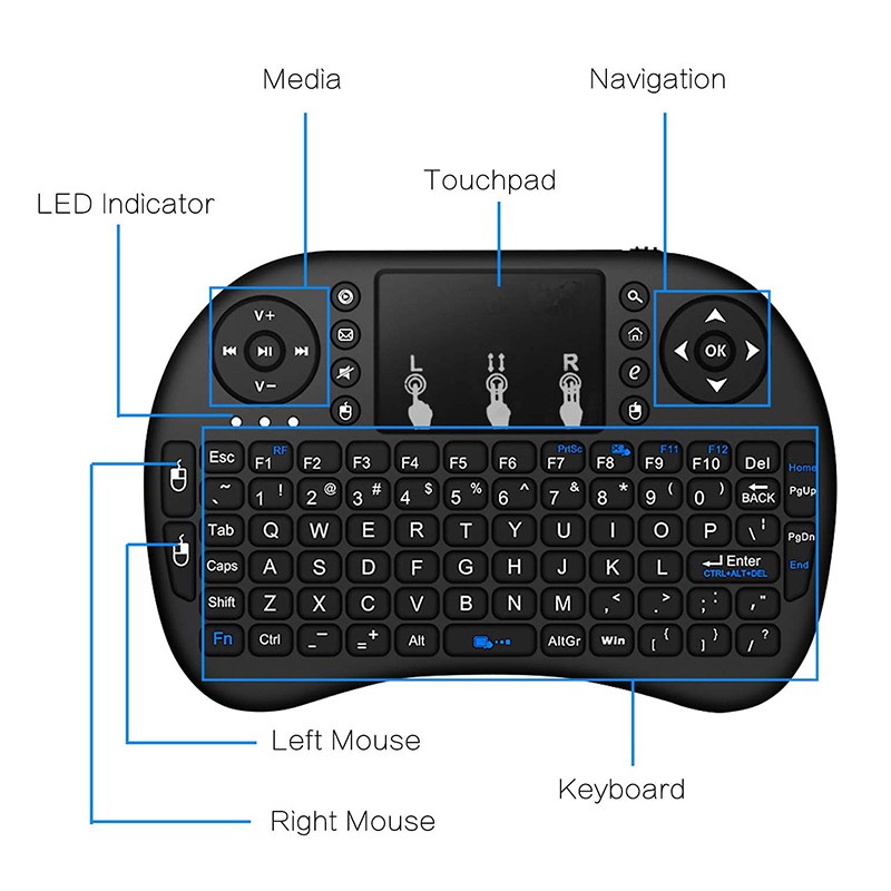 I8 Mini Keyboard 2.4GHz Backlight Wireless Mini Keyboard with Touchpad