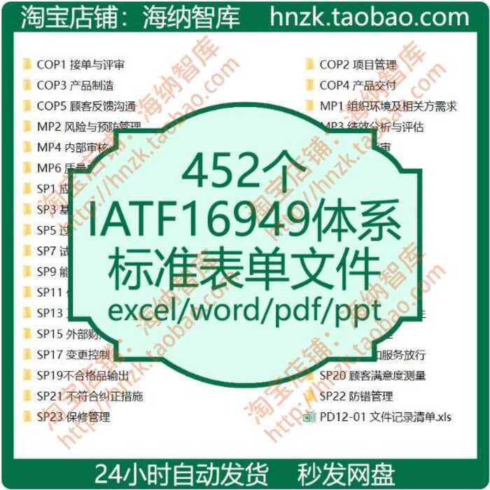 IATF16949 System Standard Document Process Form Excel Template Record List Management Procedure