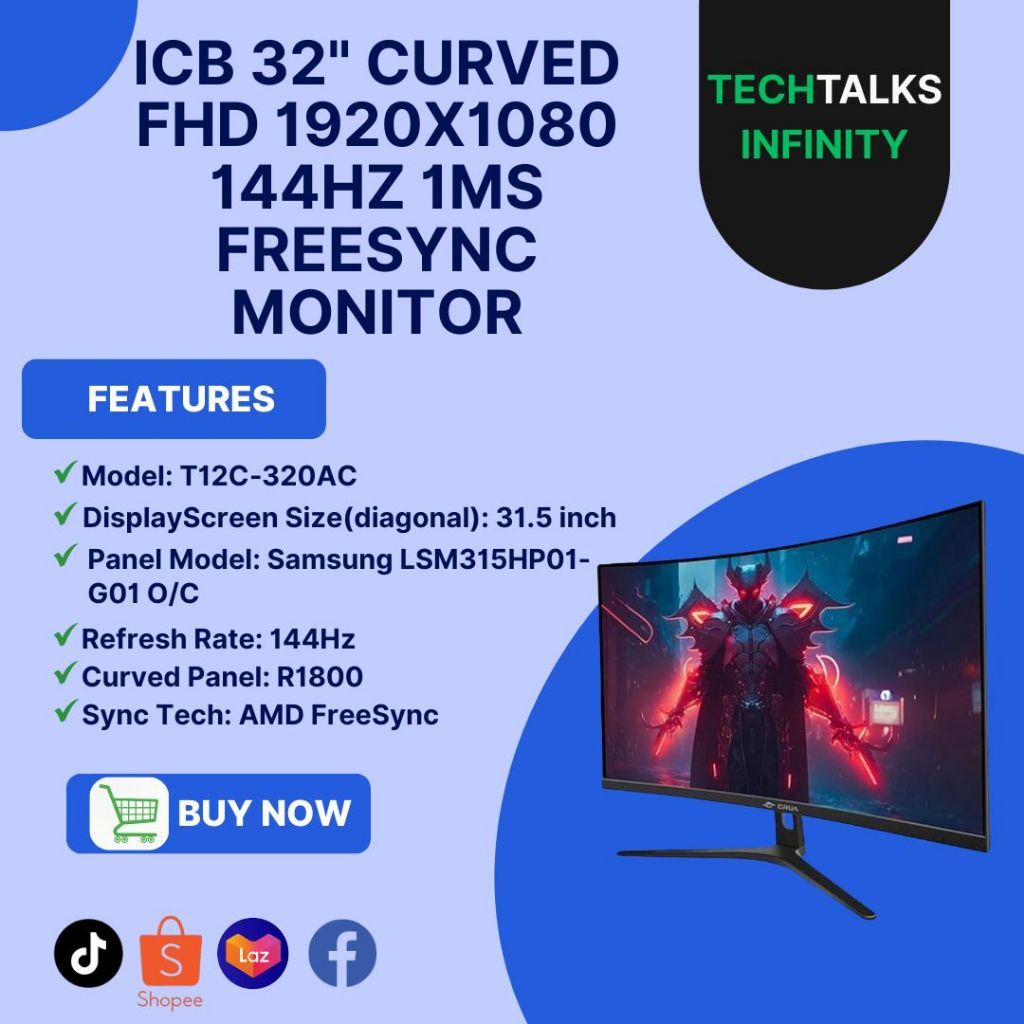 ICB 32" CURVED FHD 1920X1080 144HZ 1MS FREESYNC MONITOR
