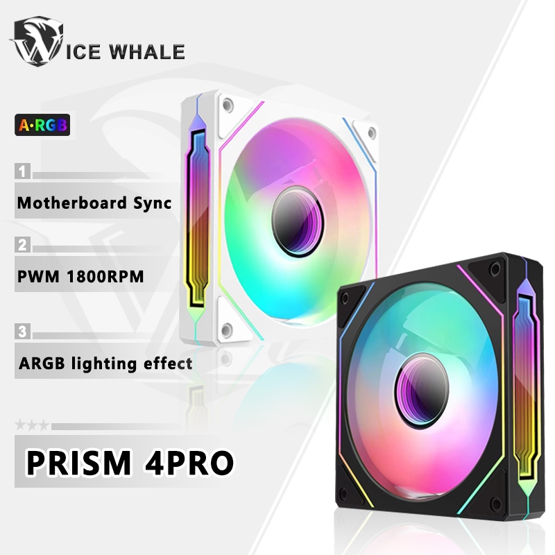 ICE Whale PRISM Gen4 PRO ARGB CPU Fan 4PIN PWM Silent chassis fan 120mm Infinite Mirror 5V 3PIN Motherboard light Sync