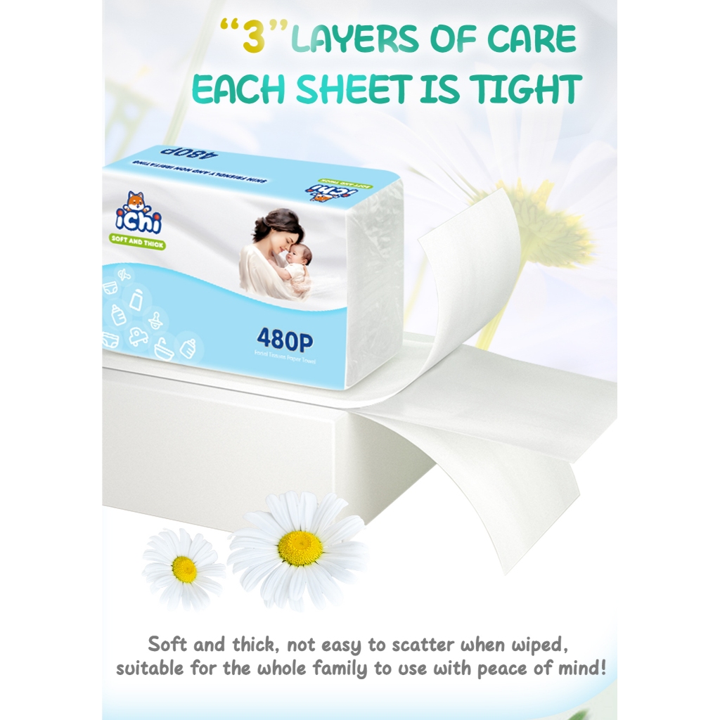 ICHI Tissue Paper towel Organic Facial Tissue 3 ply ichi wood taste series 480 sheets