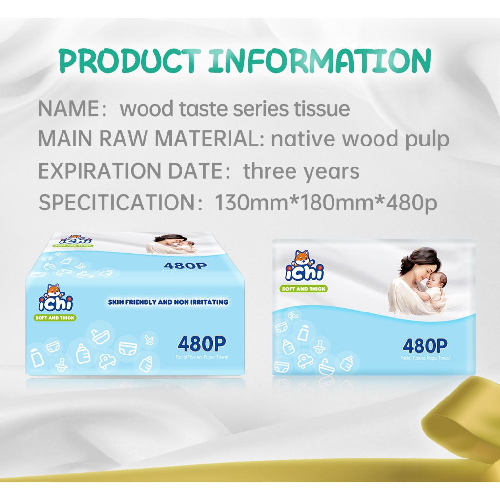 ICHI Tissue Paper towel Organic Facial Tissue 3 ply wood taste series 480 sheets Tissue