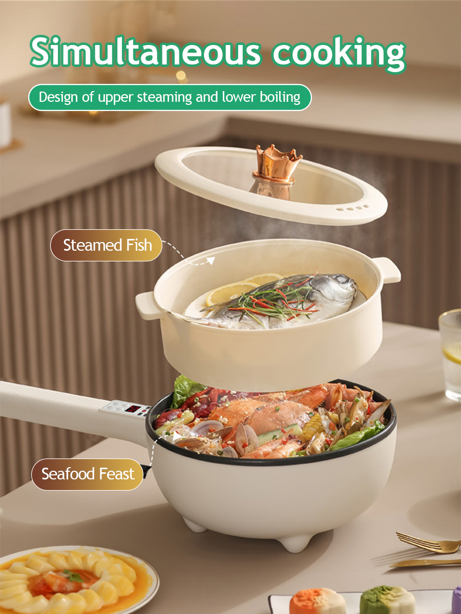 ICON Electric Frying Pan 2Layer Cooker Multifunctional Rice Cooker Non Stick Mini Pot With Steamer