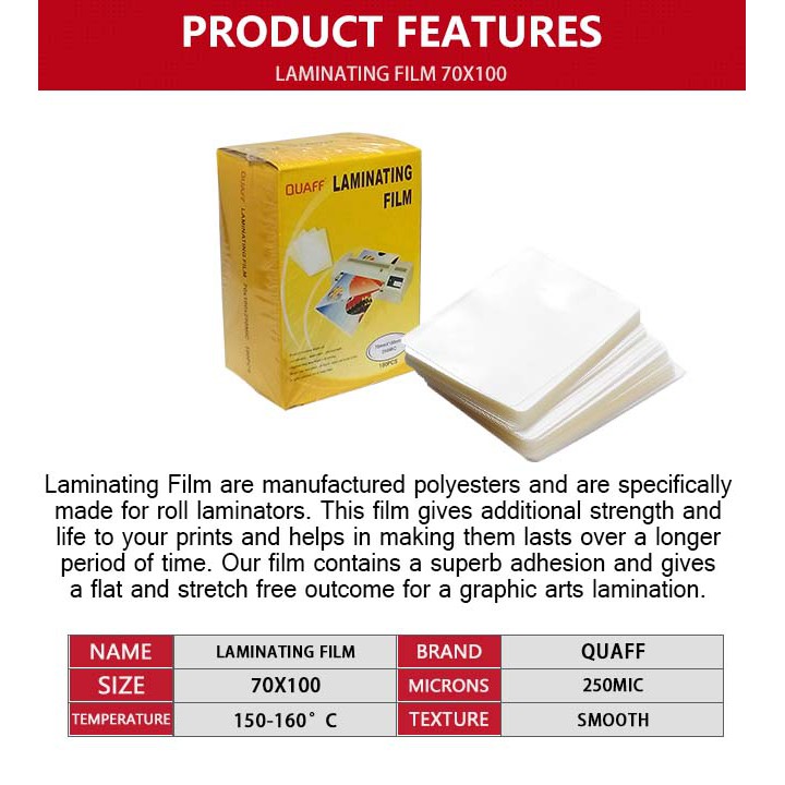 ID Size QUAFF Laminating Film Hot Lamination Process 80*110mm || 70*100mm || 65*95mm (100 sheets)