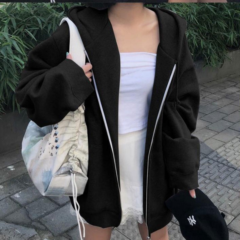 IEF Women's Fashion Hong Kong Style Simple Versatile Loose Hooded Jacket