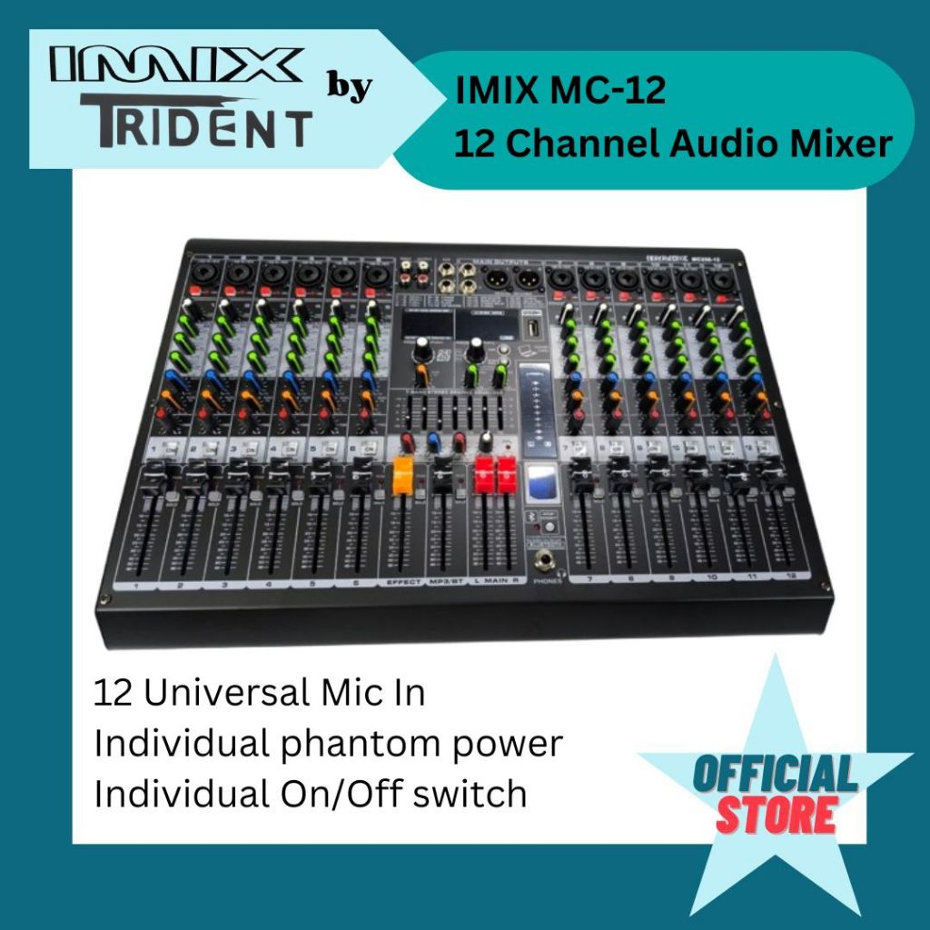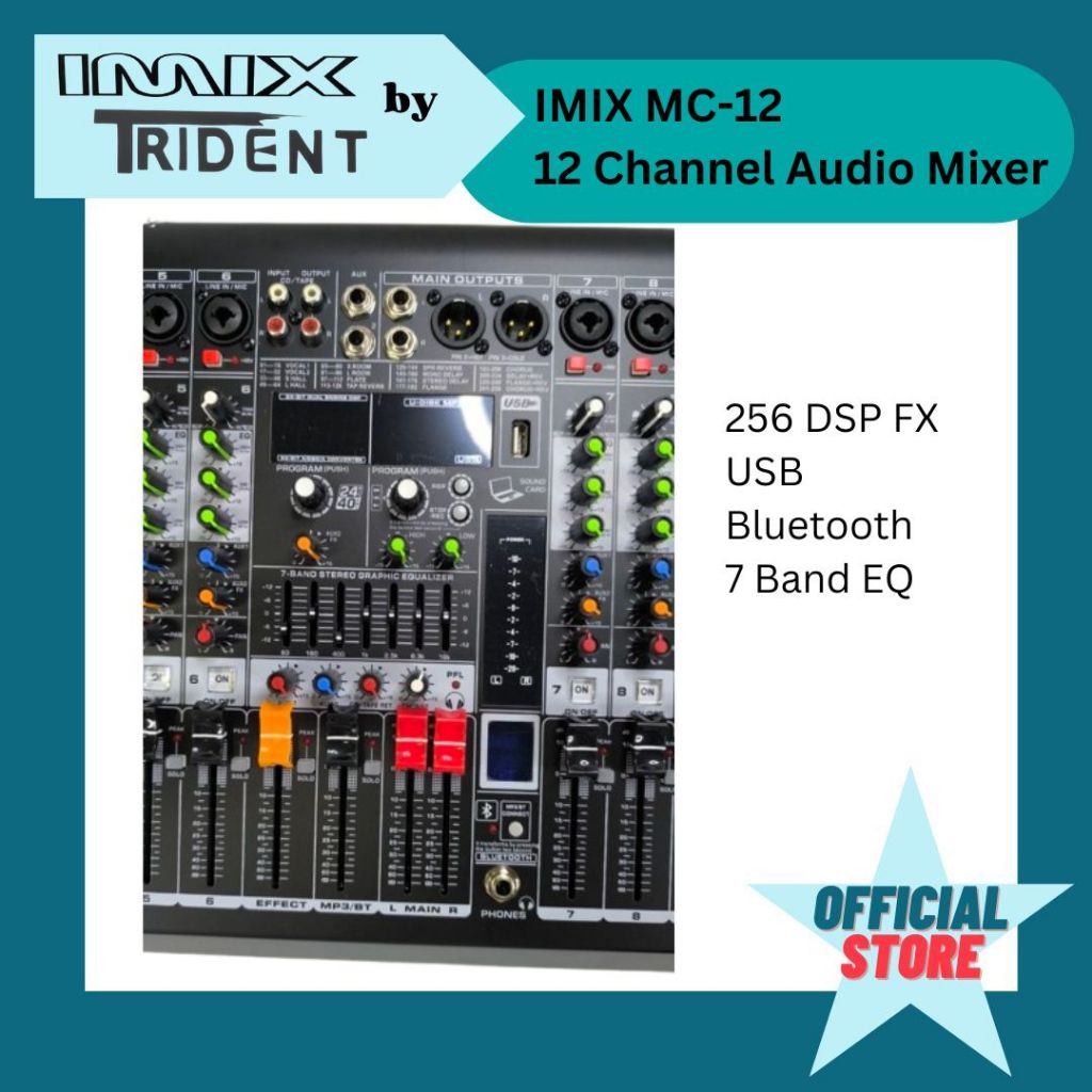 IMIX MC-12 12 channel audio mixer with 256DSP FX 7 band EQ USB Bluetooth 2 AUX 12 universal mic IN i