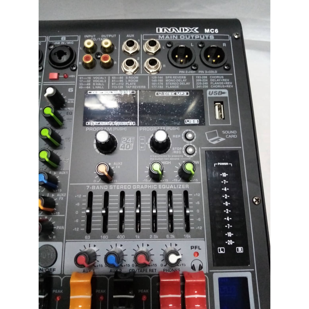 IMIX Newest Audio Mixer MC-6 with 2AUX USB BT EQ Individual Phantom Power