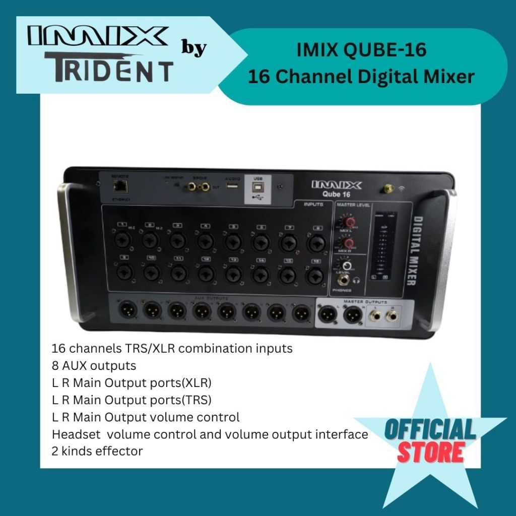 IMIX QUBE-16 16 channel digital mixer with multi track record dual FX 8 AUX out USB audio interface