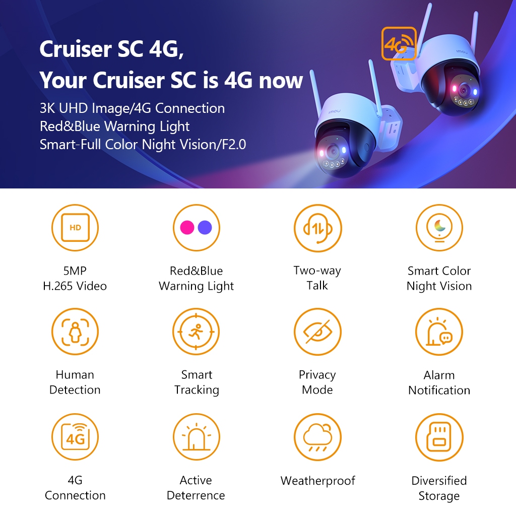 IMOU Cruiser SC 4G Security CCTV Wireless Outdoor Camera Red-Blue Warning Lights Two-way Audio WiFi