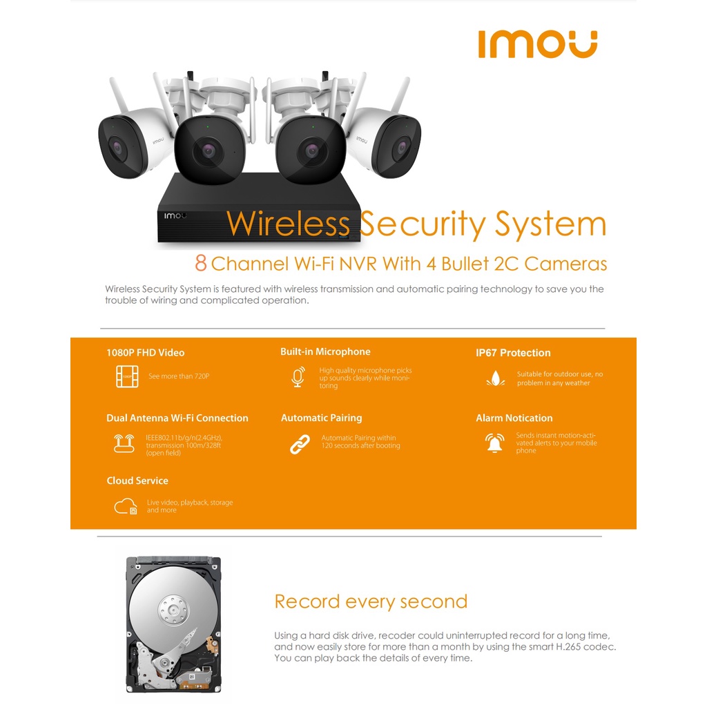IMOU WIRELESS IP CCTV PACKAGE WITH AUDIO RECORDING 8 CHANNEL NVR 4 CAMERAS 2MP CCTV KIT