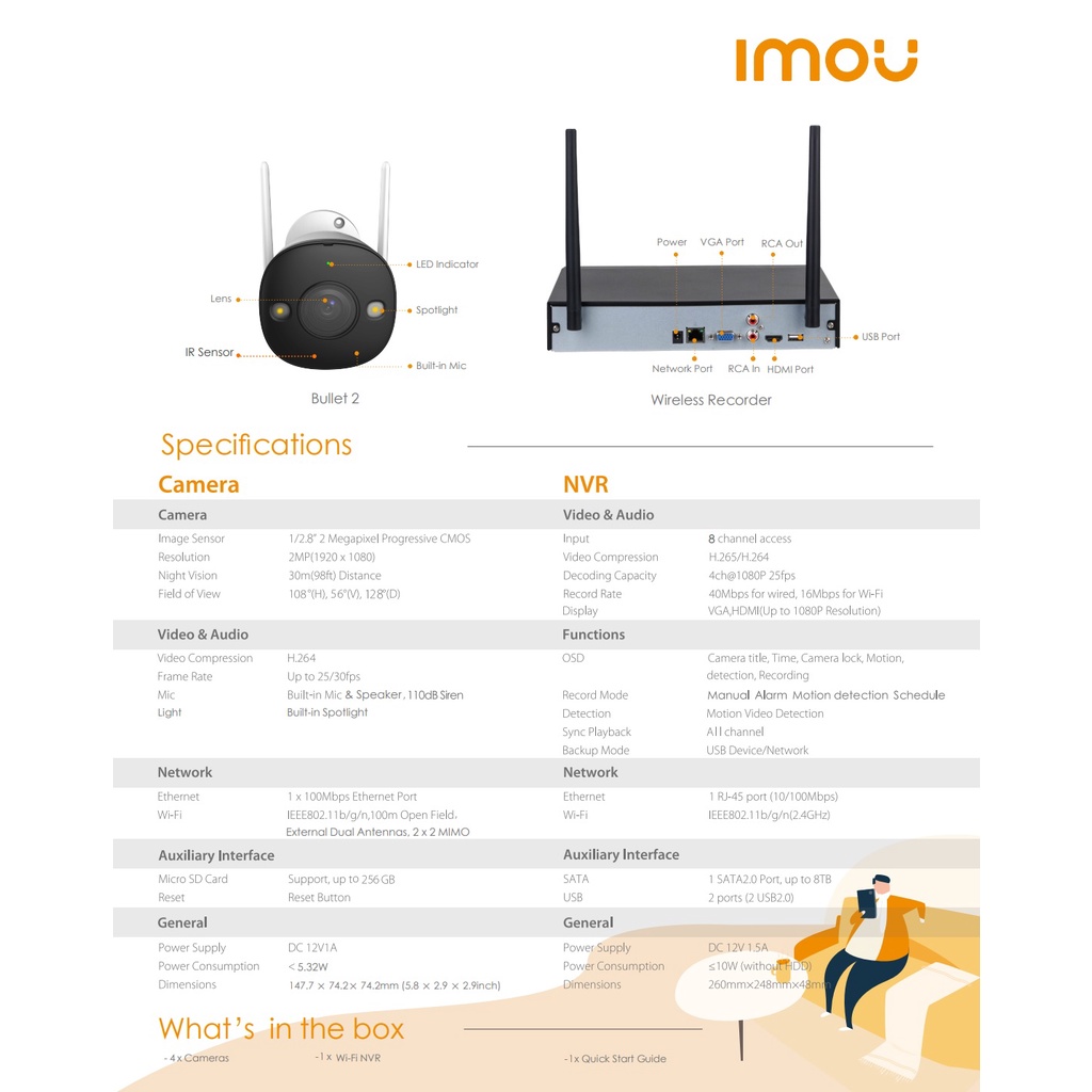 IMOU WIRELESS IP CCTV PACKAGE WITH TWO WAY AUDIO 8 CHANNEL NVR 4 FULL COLOR CAMERAS 3.6 2MP CCTV KIT