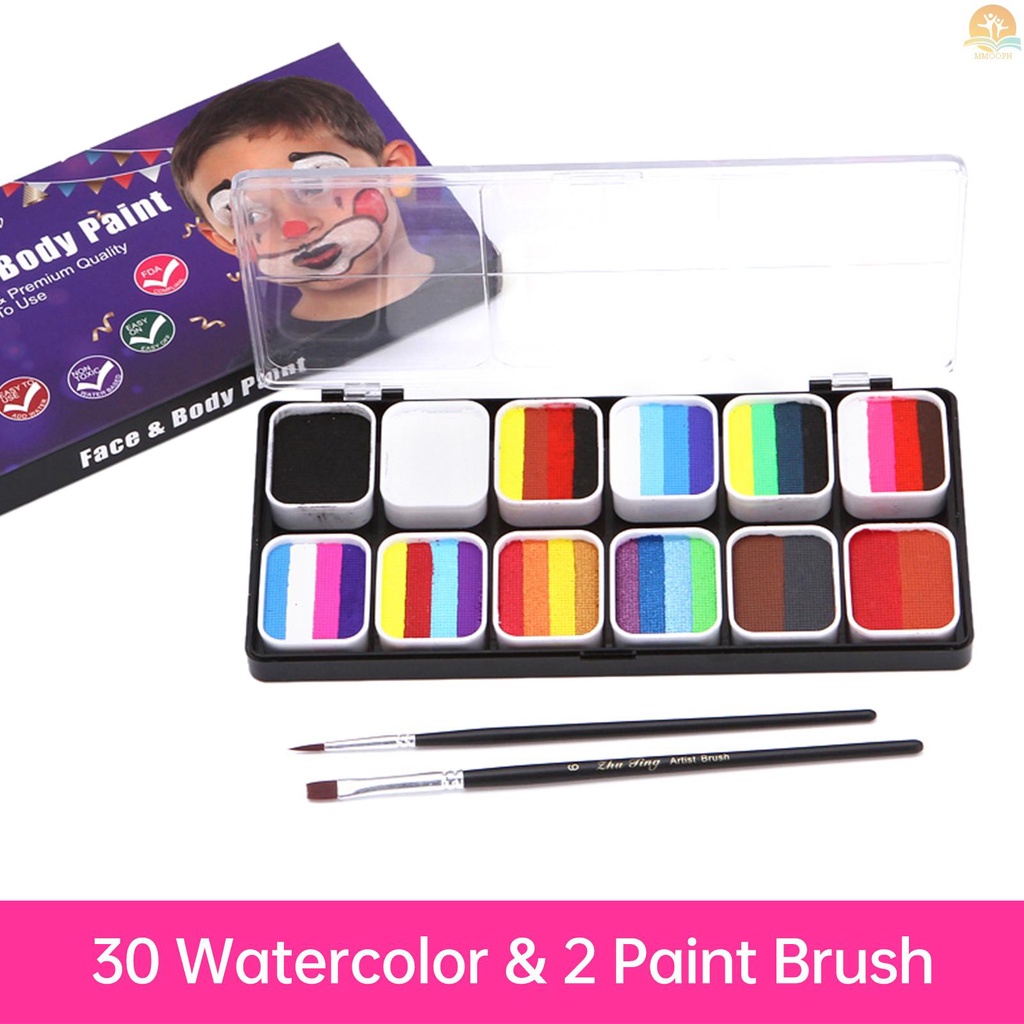IN STock Face Paint Kit Water Activated 30 Colors Set Professional Split Cakes Paint Palette Set with 2 Brush Safe & Non Toxic Face and Body Painting Makeup Hypoallergenic Facepain