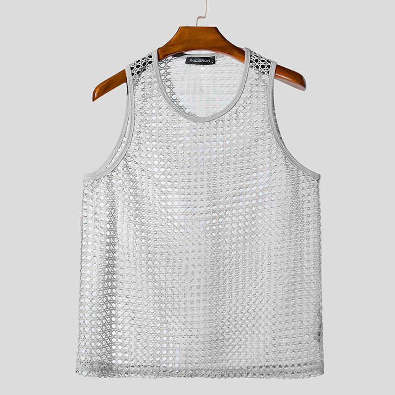 INCERUN Men's Beach Style Mesh Sleeveless Tank Top