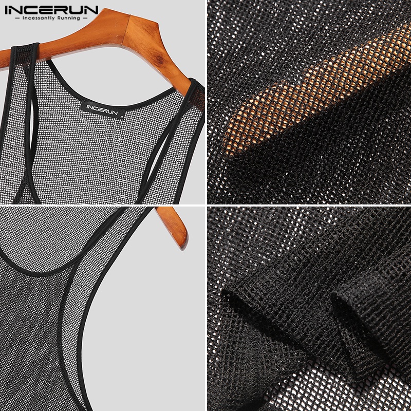 INCERUN Men's Casual Mesh Hollow Sleeveless Tank Top