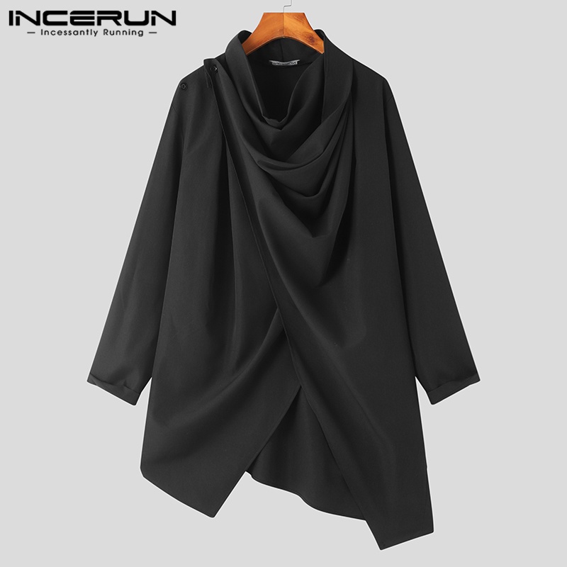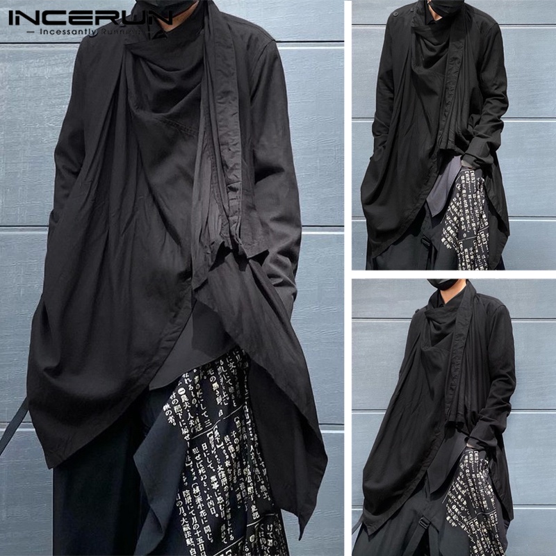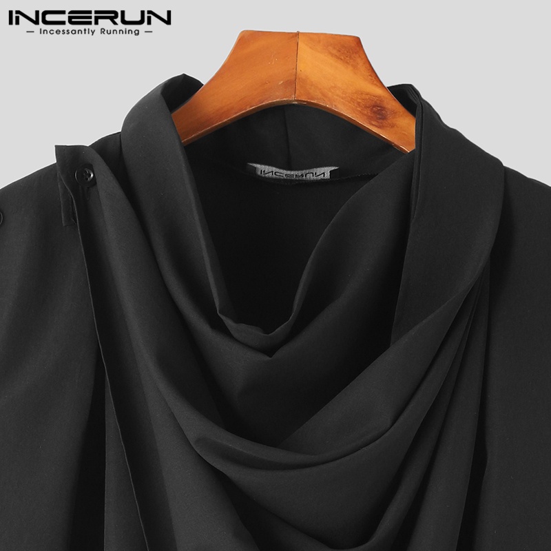 INCERUN Men's Gothic Punk Poncho Cape Long Sleeve Solid Color Casual Cloaks