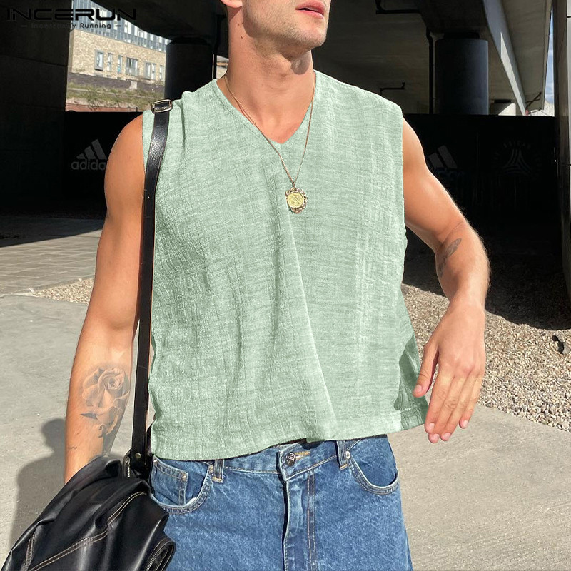 INCERUN Men's Texture V-neck Tank Top
