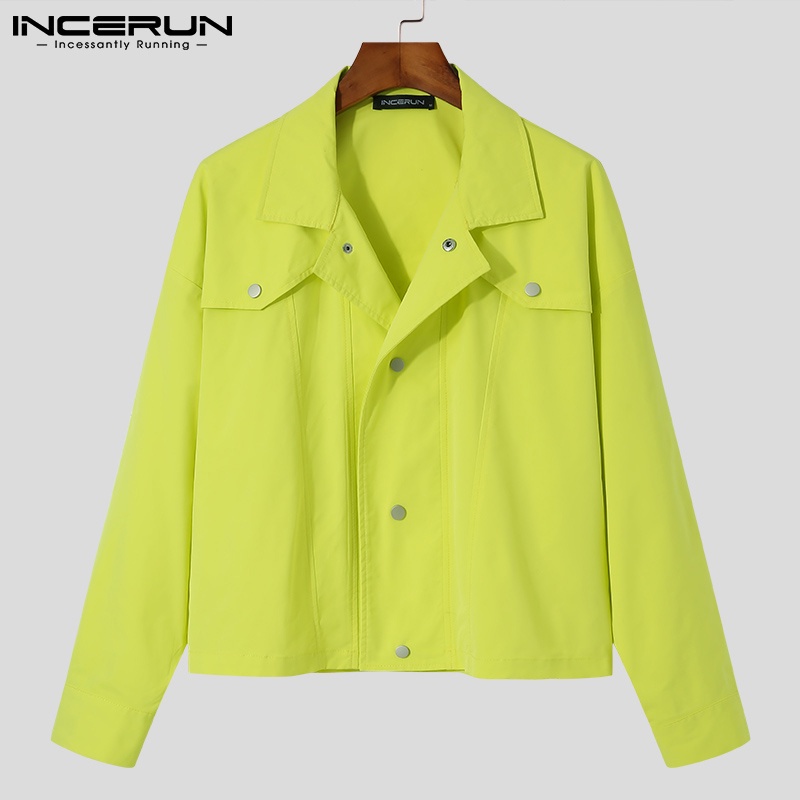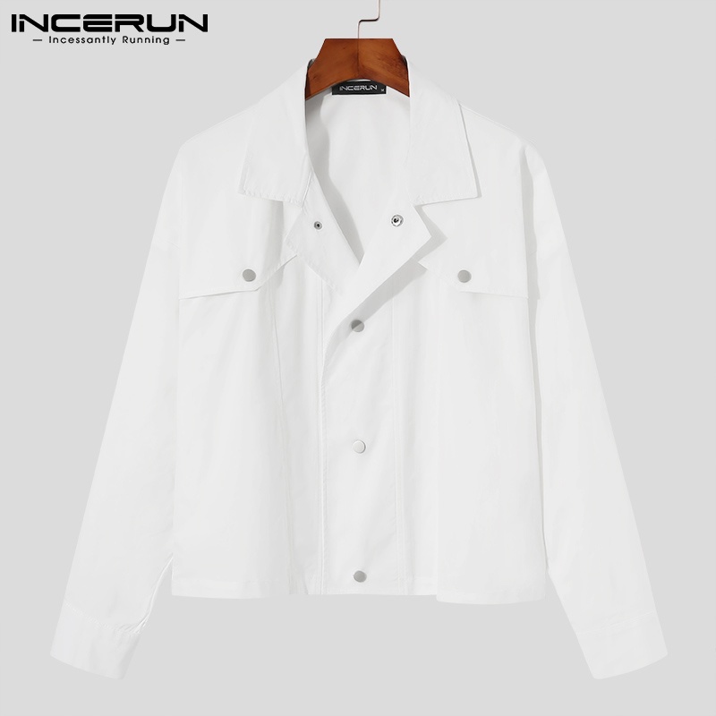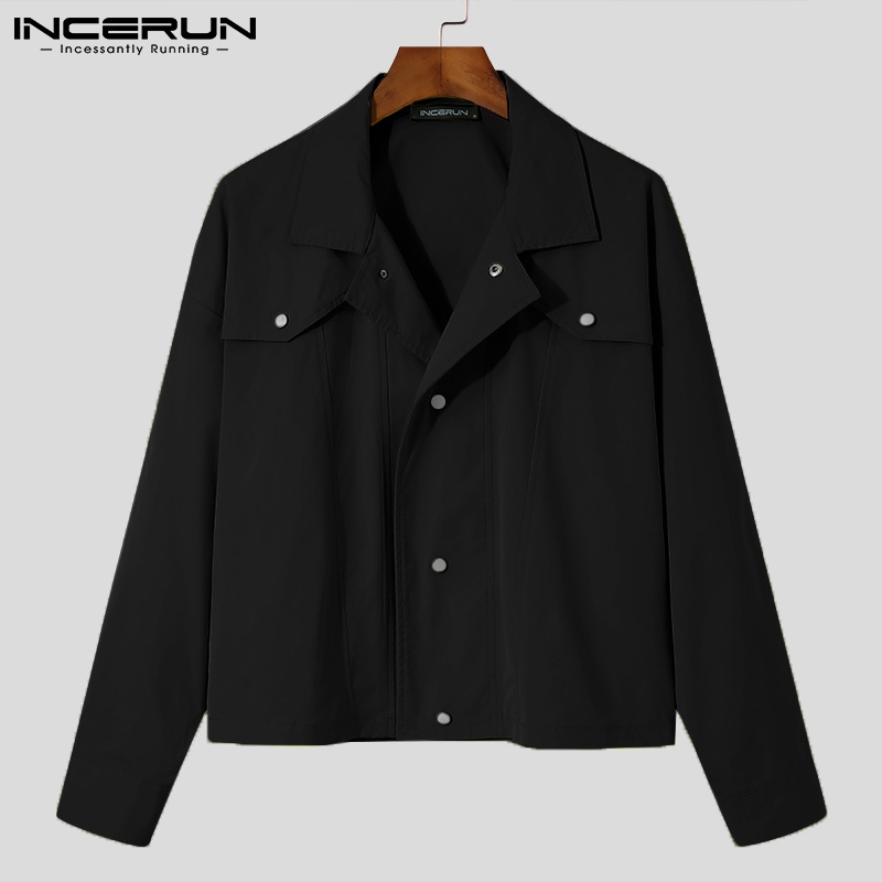 INCERUN Men's Western Style Fashion Long Sleeves Solid Color Lapel Jacket