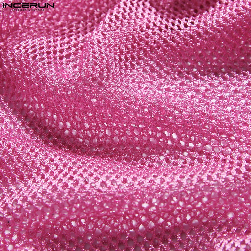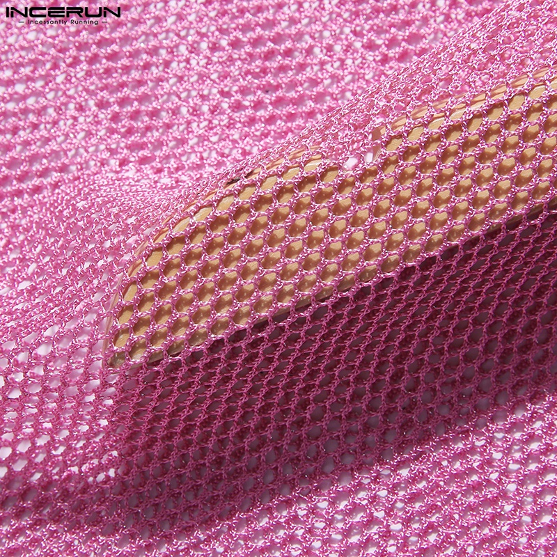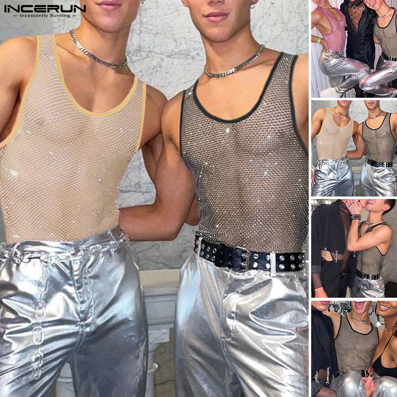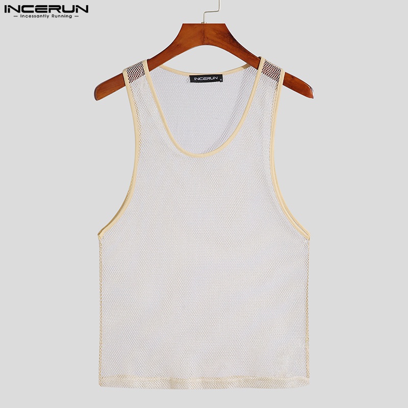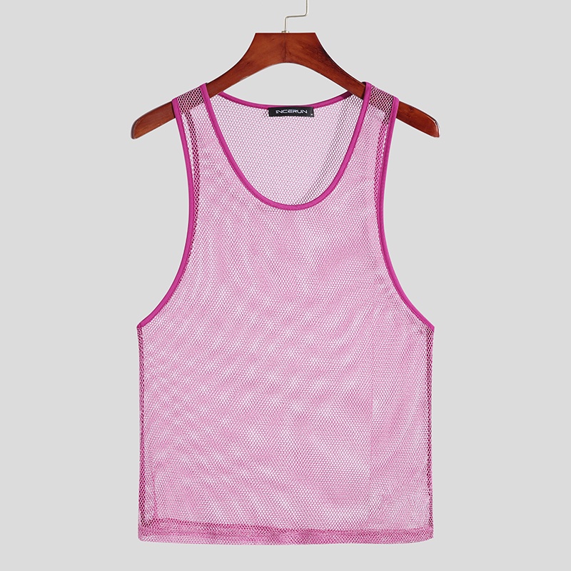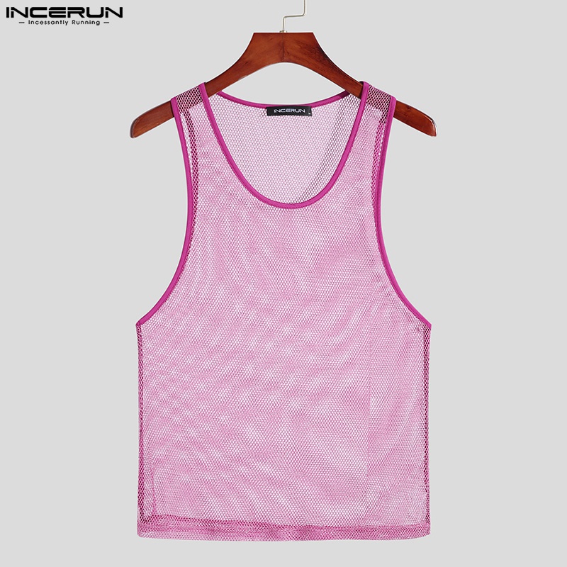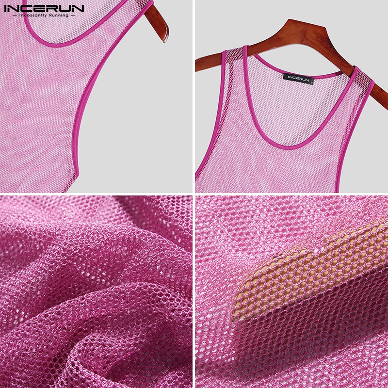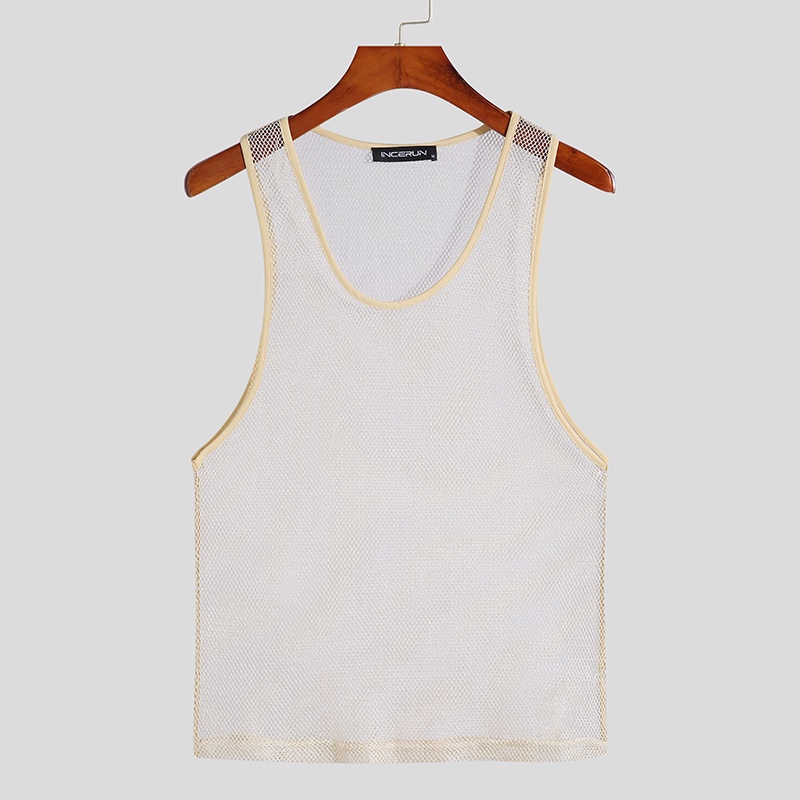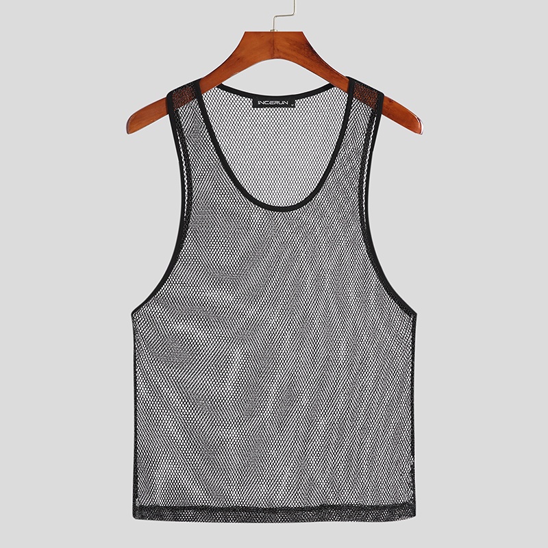 INCERUN Men 3 Colors Shinny Mesh See Through Sleeveless Hollow Out Tank Tops