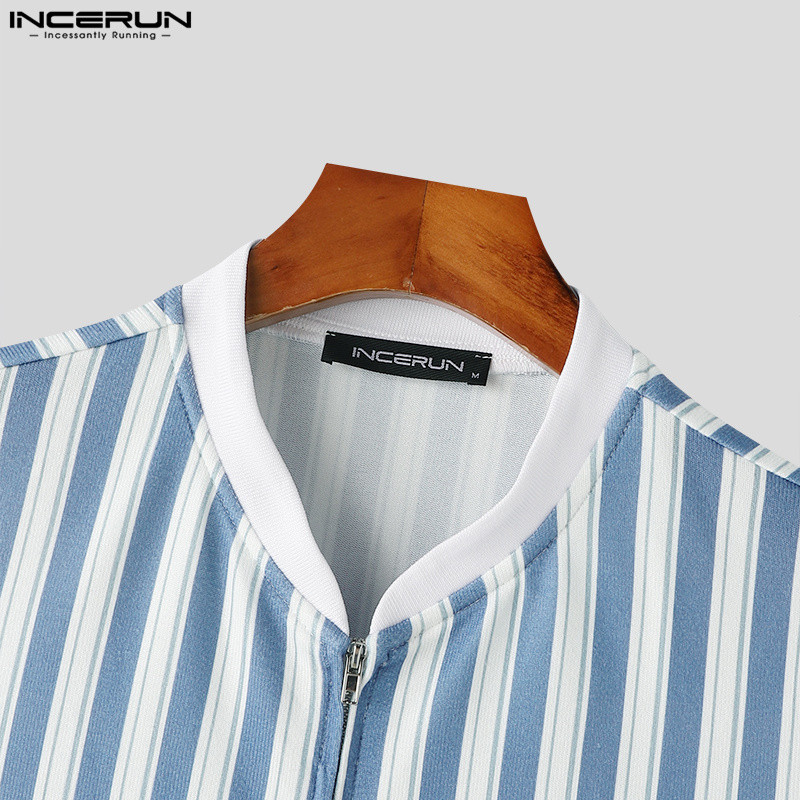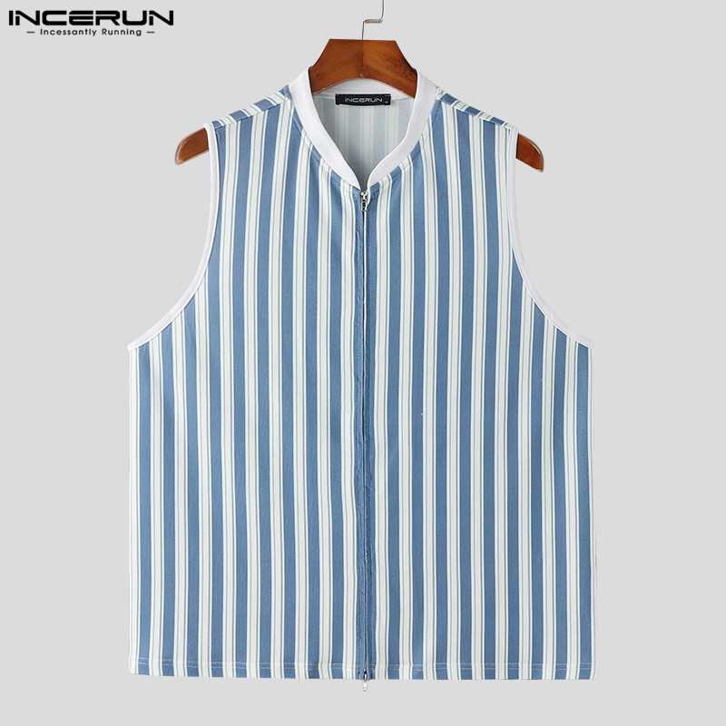 INCERUN Men Korean Fashion V-Neck Stripe Zipper Sleeveless Tanks