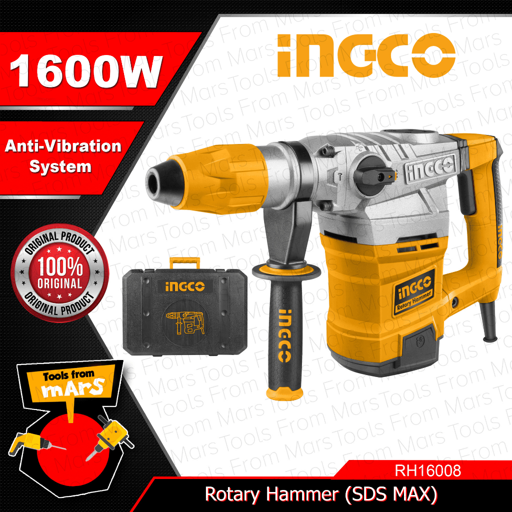 INGCO 1600W Rotary Hammer Chipping Gun SDS MAX with Chisel Anti-Vibration System -TFM- IPT
