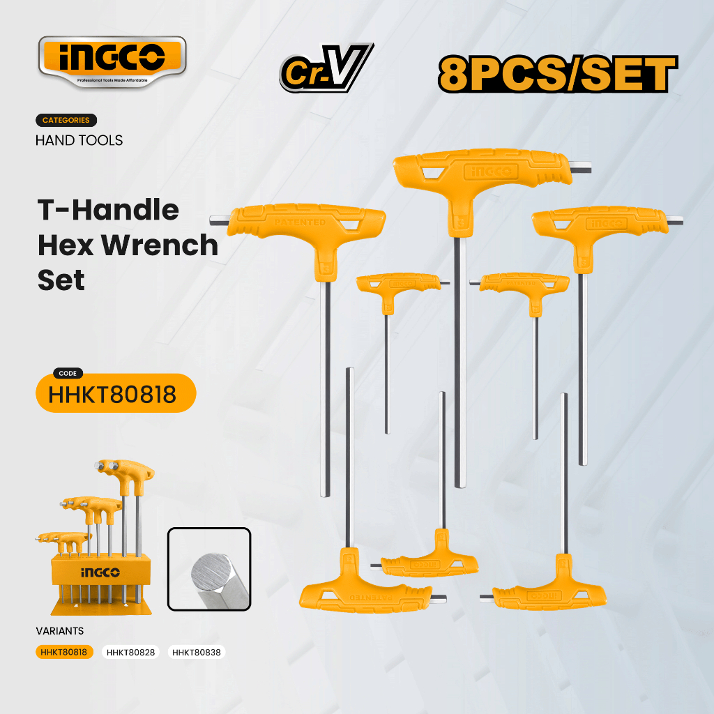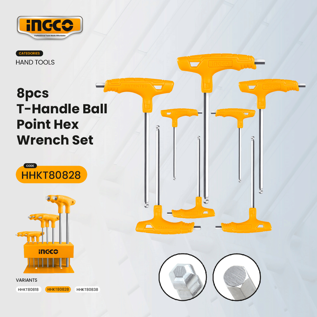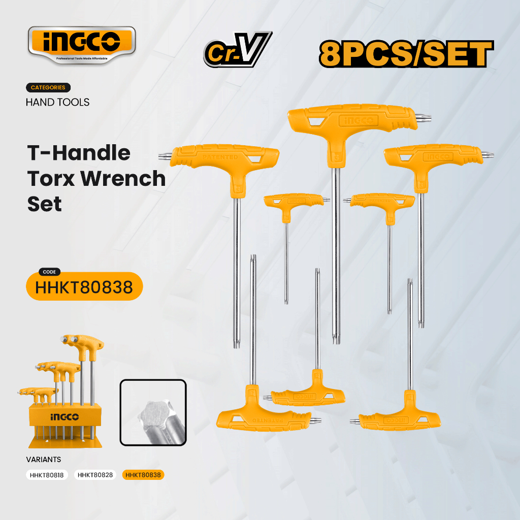 INGCO 8pcs T-Handle Hex Wrench | T-Handle Ball Point Hex Wrench | T-handle Torx Wrench Set IHT