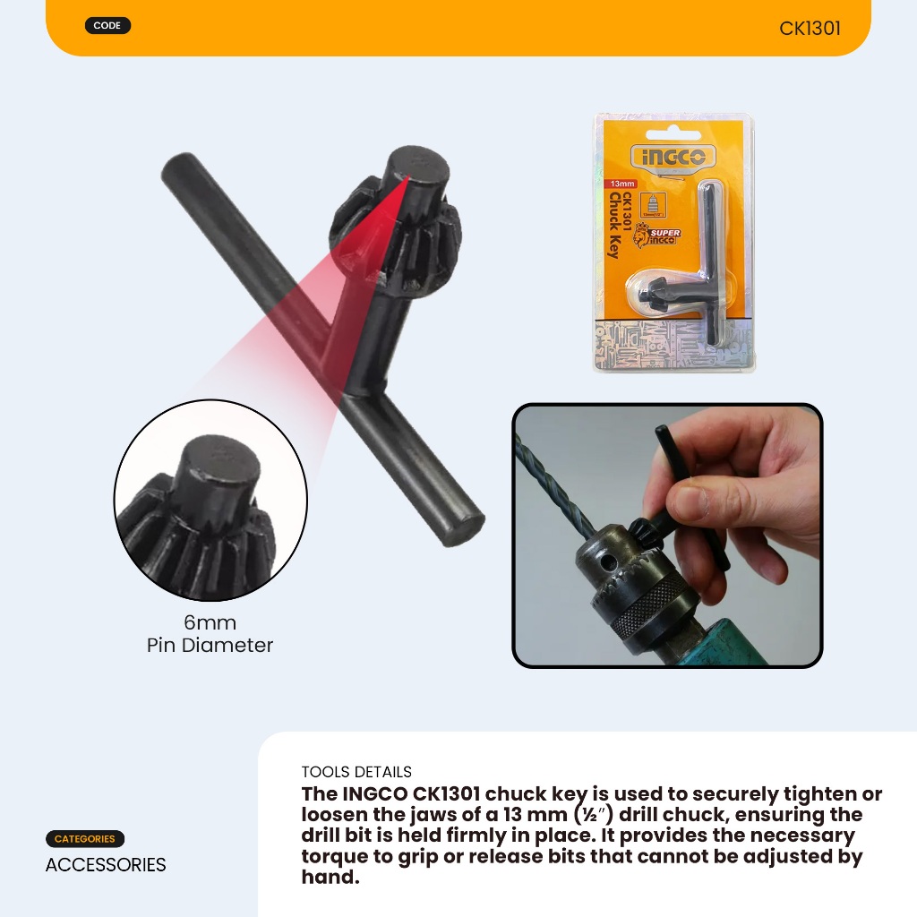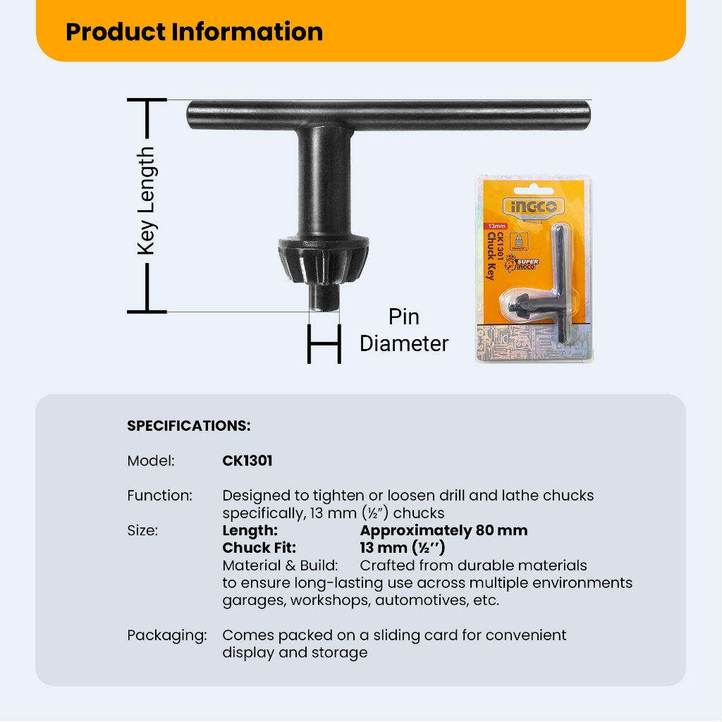 INGCO Chuck Key 1/2" for 13mm Drill Chuck CK1301 IHT
