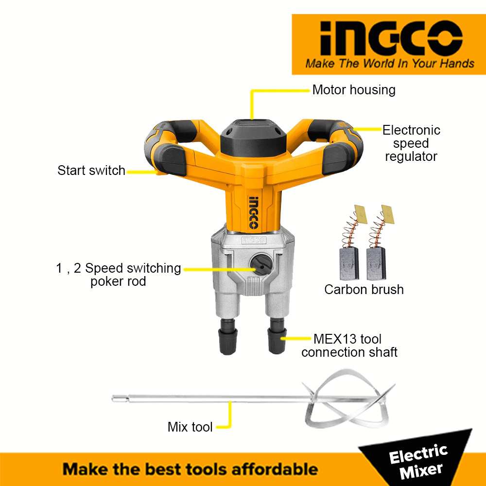 INGCO Electric Mixer 1800W with Mixing Pad Mortar Mixer Concrete Mixer Cement Mixer _P