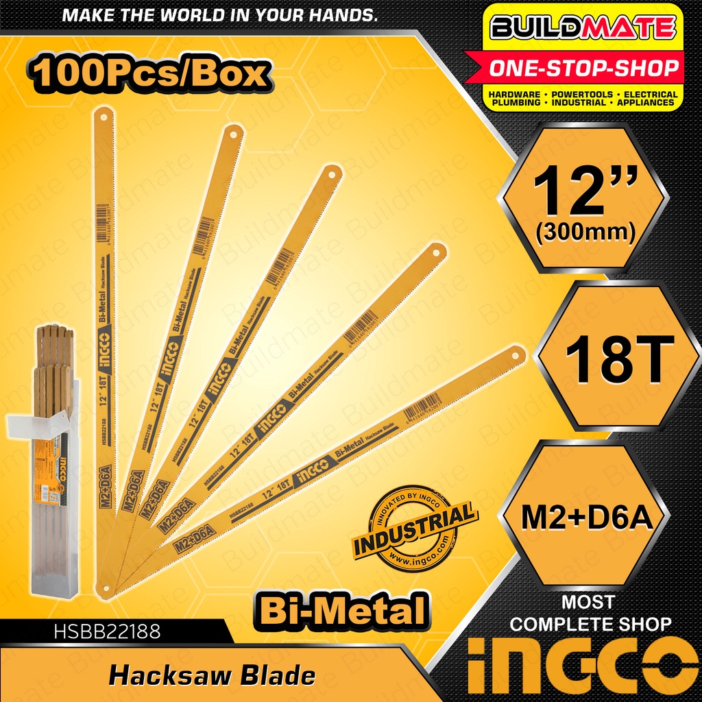 INGCO Hacksaw Blade 100PCS/BOX 12" Inch 18T Bi-Metal High Speed Hack Saw Blade HSBB22188 | IHT2