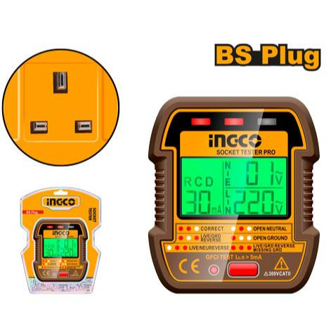 INGCO Socket Tester HESST30012/HESST30011 Used for Electrical Outlet Wire Polarity Check -TFM- IPT