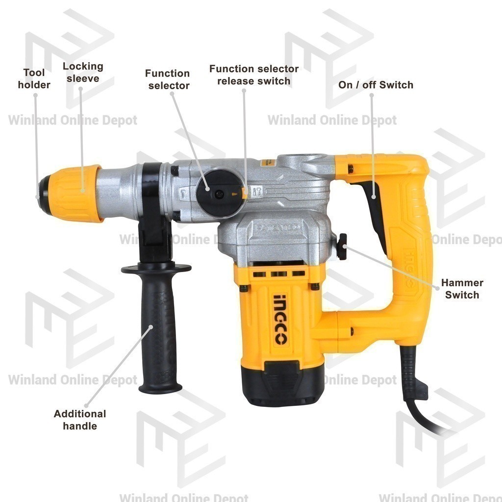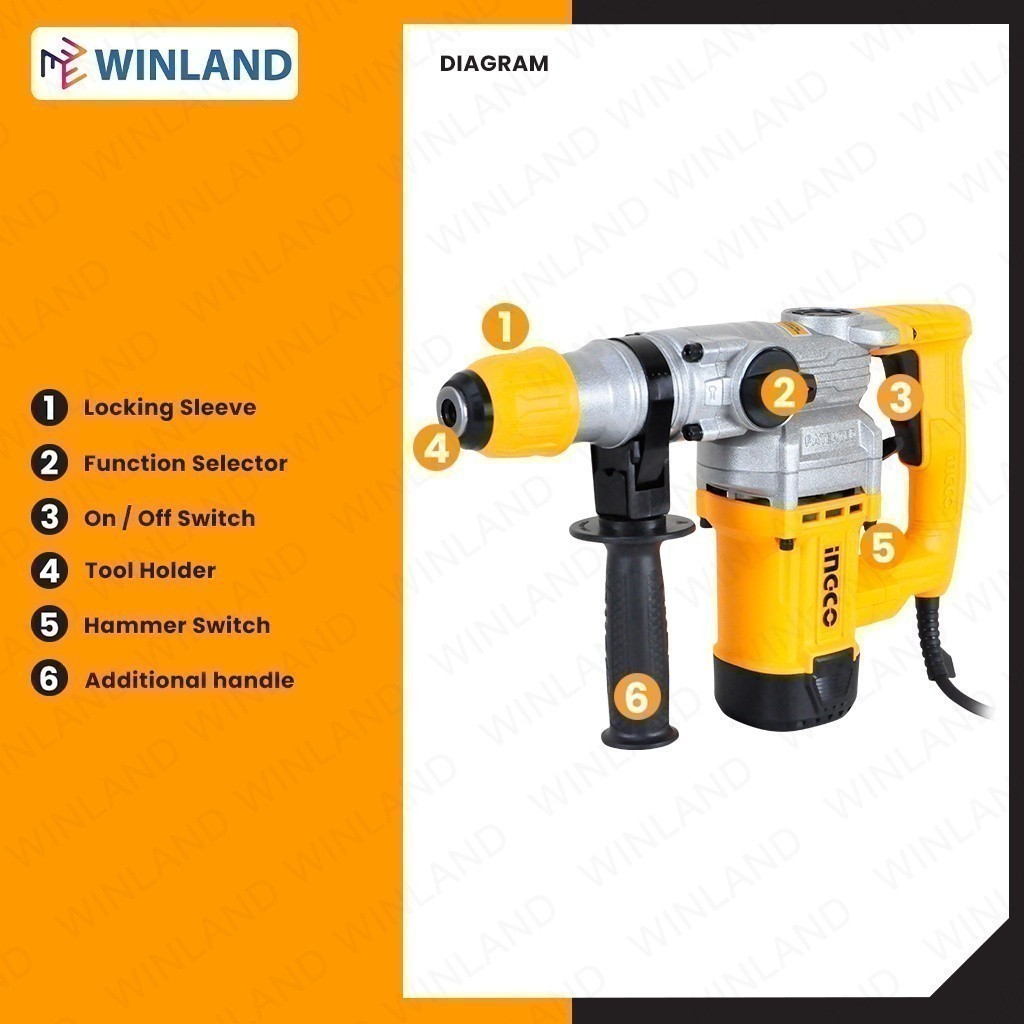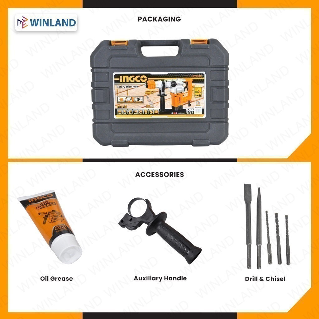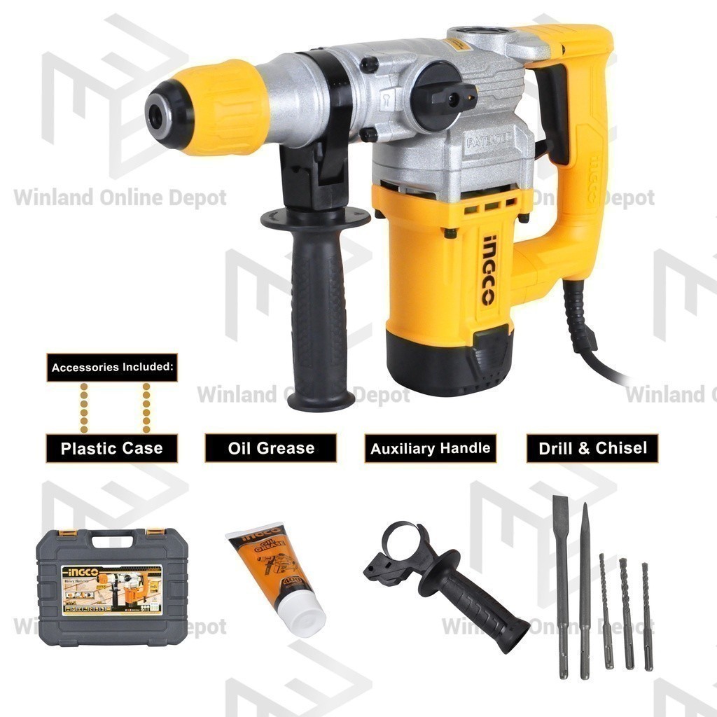 Ingco by Winland Rotary Hammer / Chipping Gun 1050W w/ FREE Bits and Chisels RH10506 ING-PT