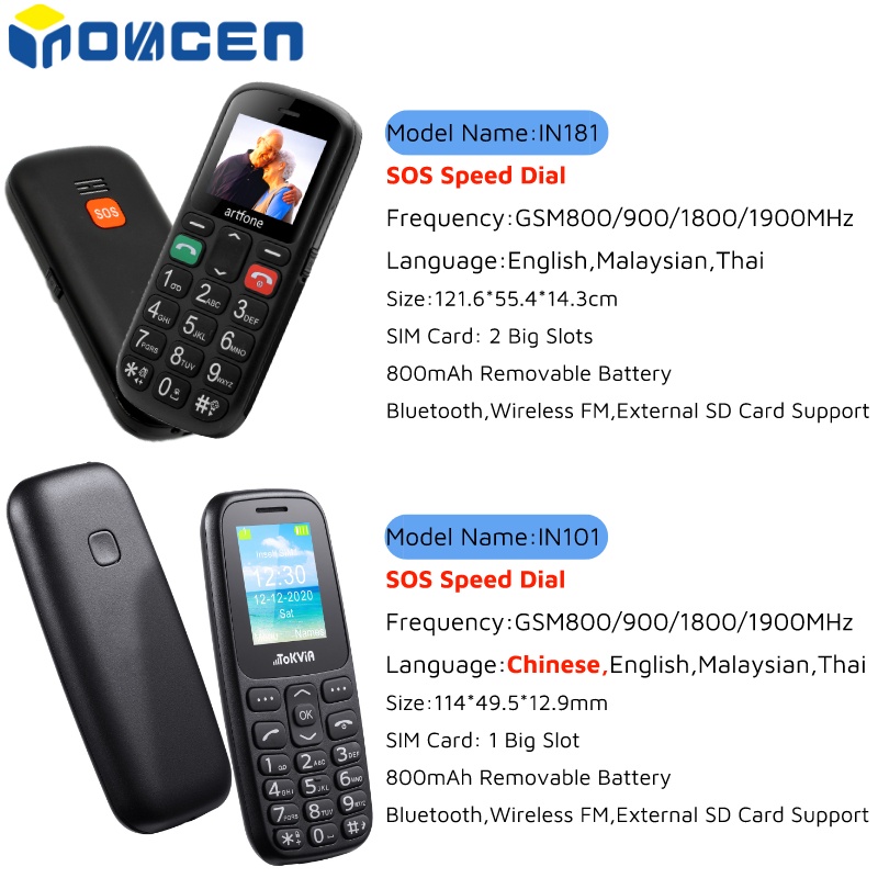 INOVAGEN 2g Senior Phone In101/In181 Old Man With Sos Key Big Display Icon Font Keypad Torch Music Audio Function For Citizen Backup Feature