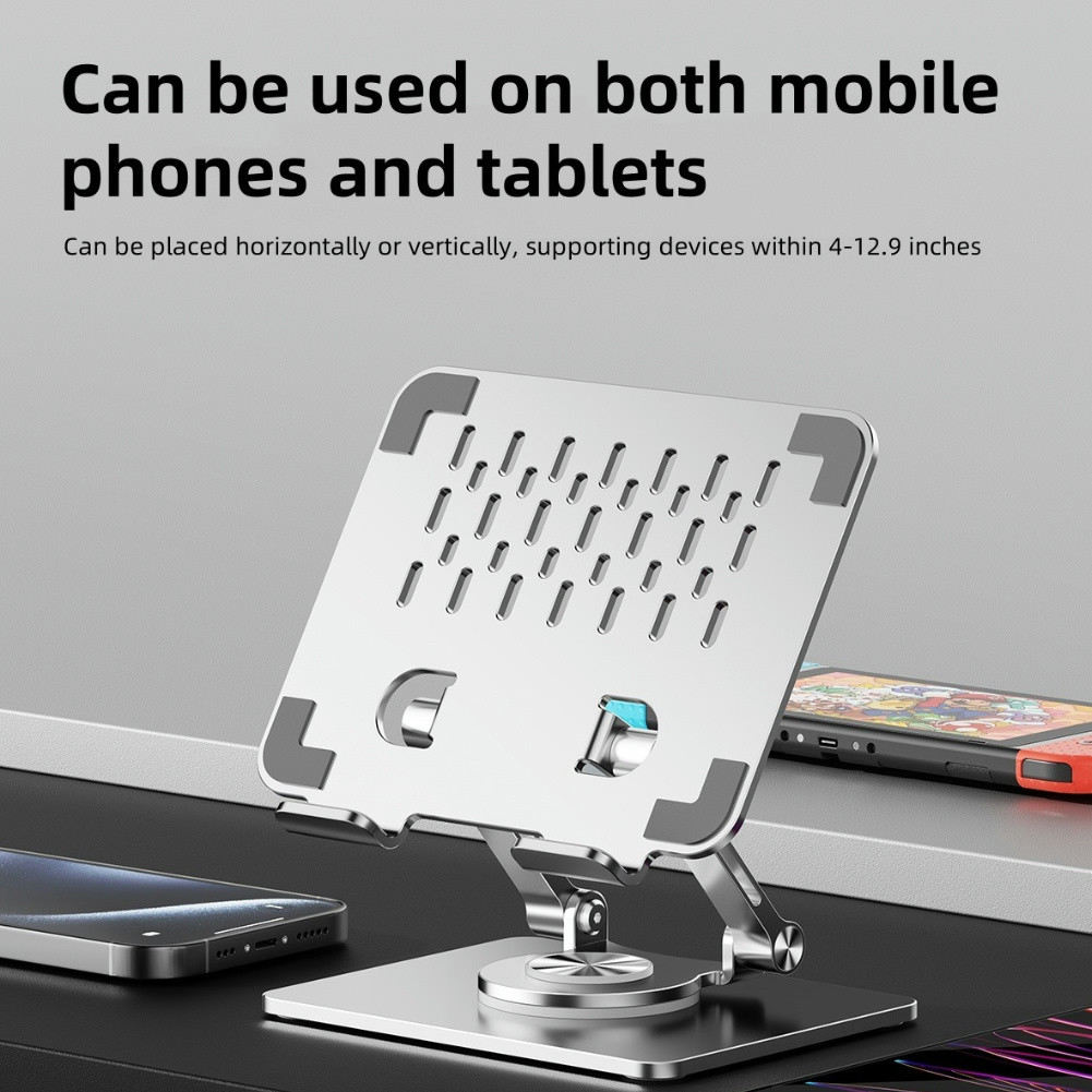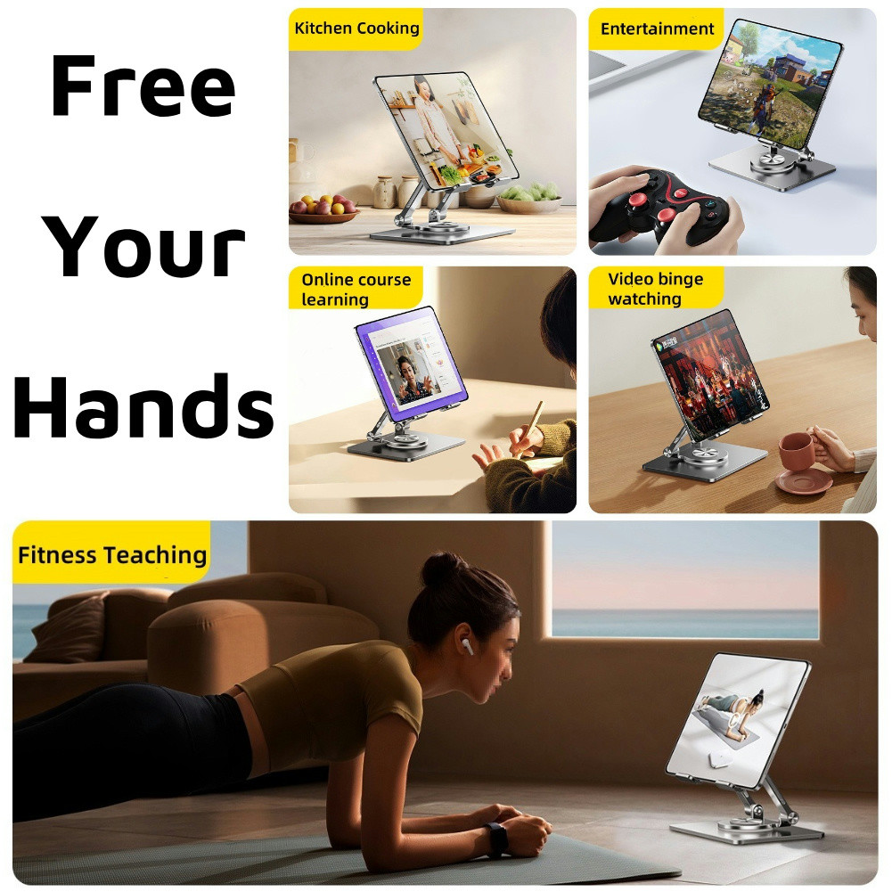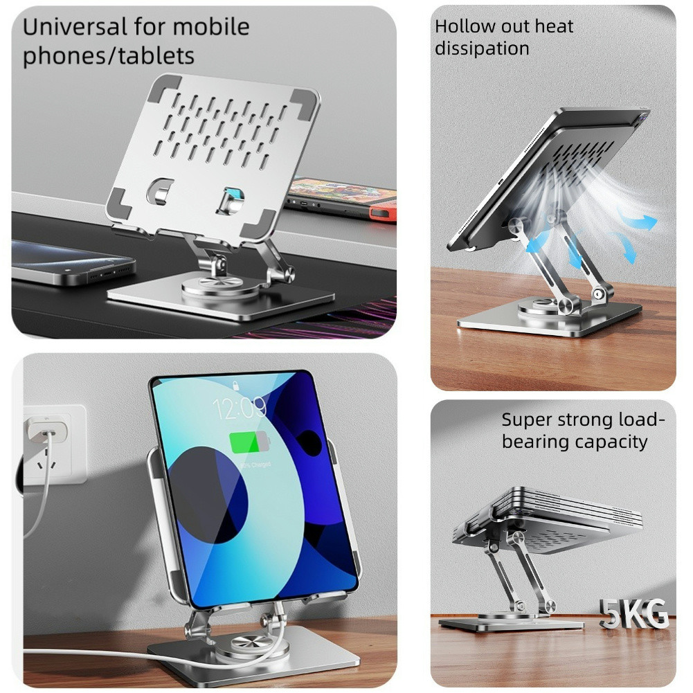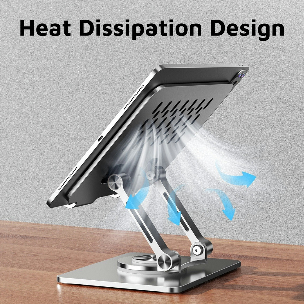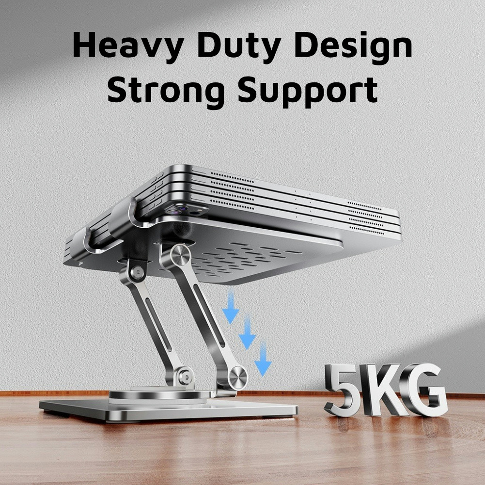 INOVAGEN Heavy Duty Tablet Holder Metal Stand for Desk Support,Rotatable Tablet Stand For Tablet,Phone from 4.7'' to 12.9'',Height Adjustable Foldable Mount