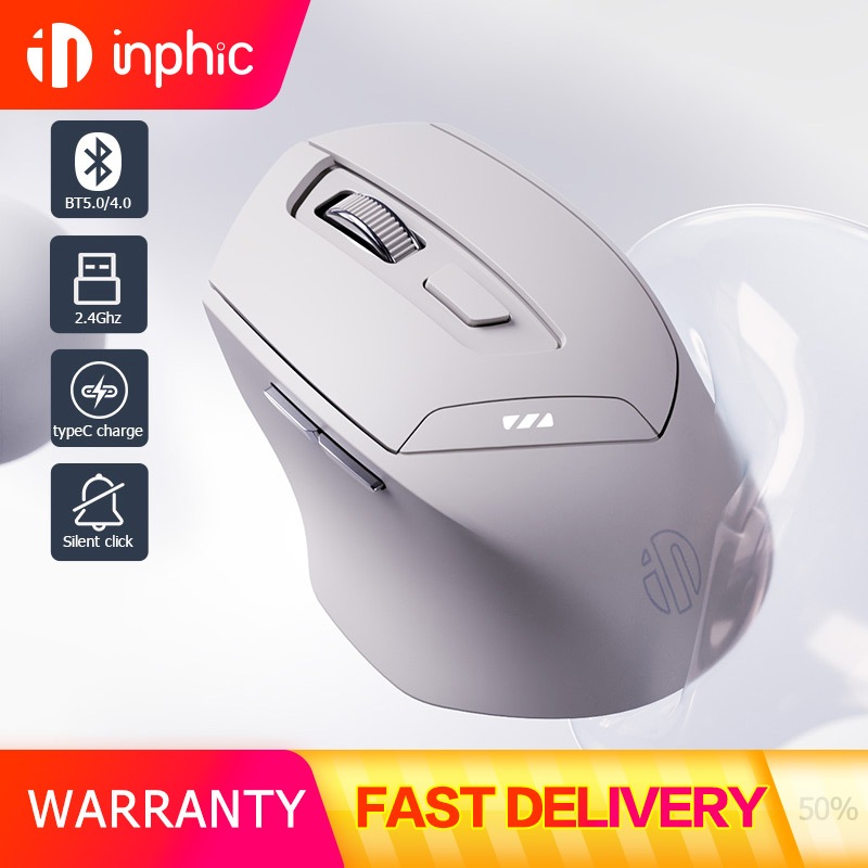 INPHIC DR6 Bluetooth Mouse Rechargeable 2.4G+Bluetooth 5.0/4.0 Tri-Modes 2400dpi Wireless Mouse Mute Ergonomic Mouse for iPad Laptop Desktop Mac