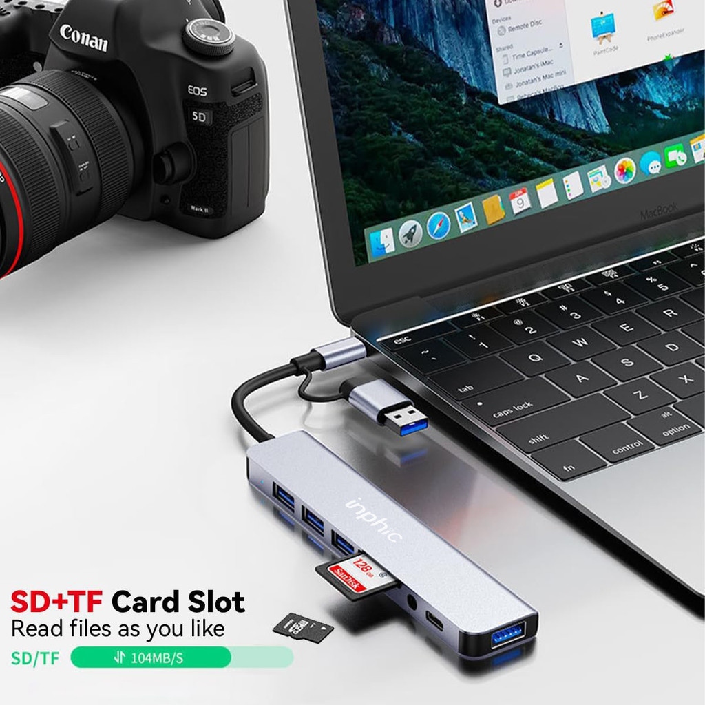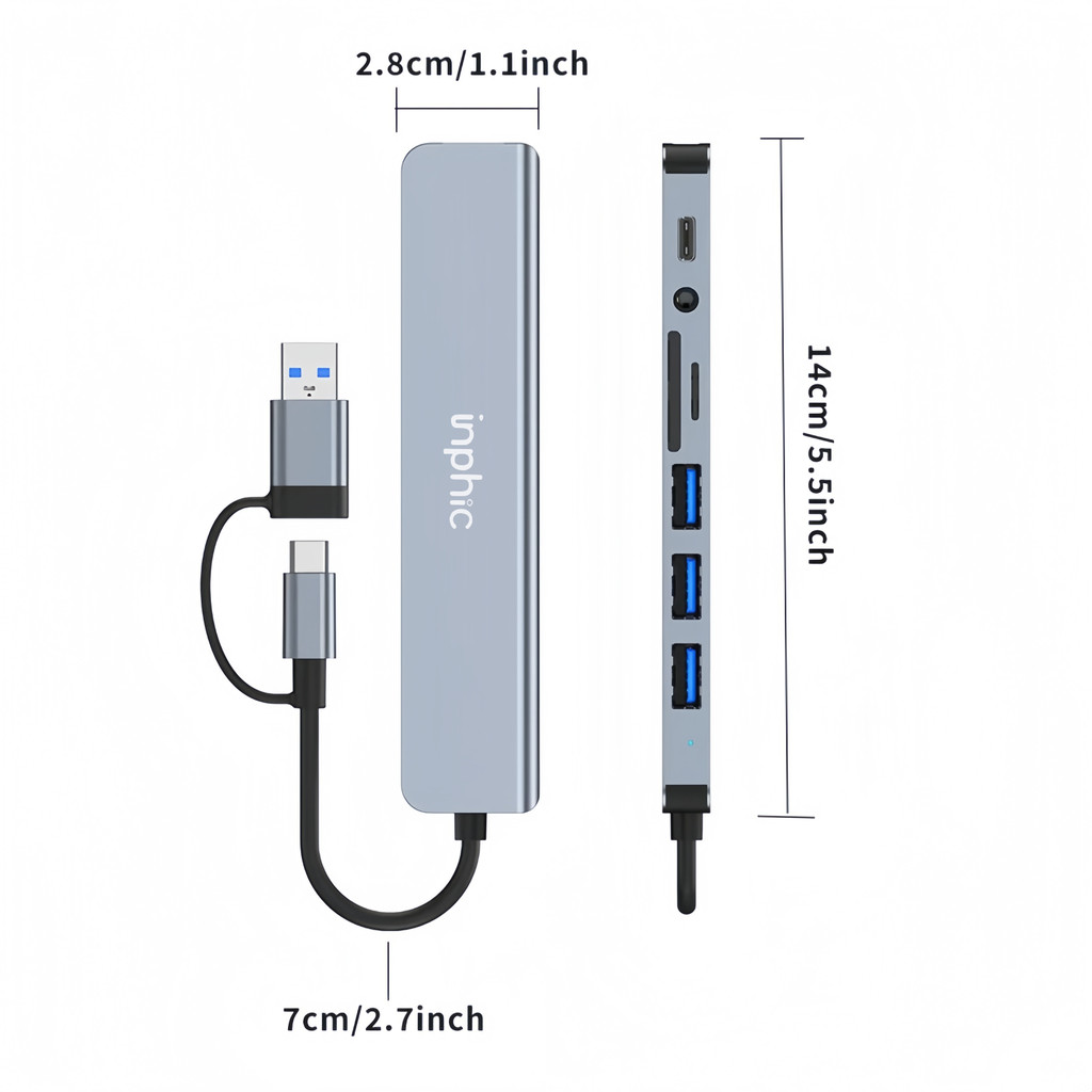 INPHIC USB C Hub USB Splitter 8-in-1 USB Extender with 4 USB Port 1 USBC Jack TF/SD Card Reader 3.5mm Audio Output for PC And Mobile