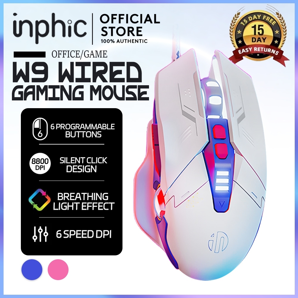 INPHIC W9 Wired Gaming Mouse 200-12800DPI 7 Programmable Buttons, Macro Computer Mouse for FPS Games