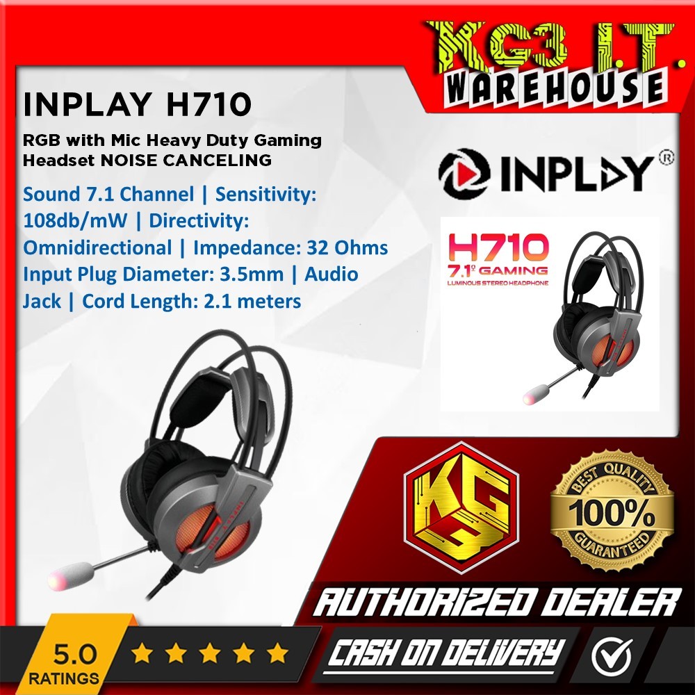 INPLAY H710 RGB Light Channel Gaming Luminous Stereo Headphoen With Mic Noise Canceling For Gaming