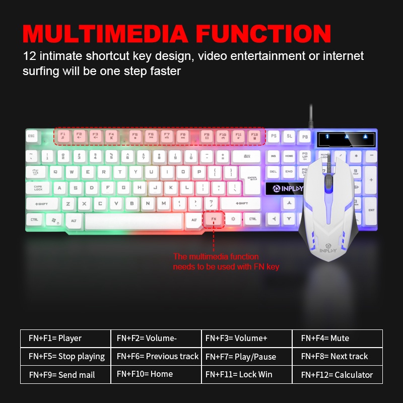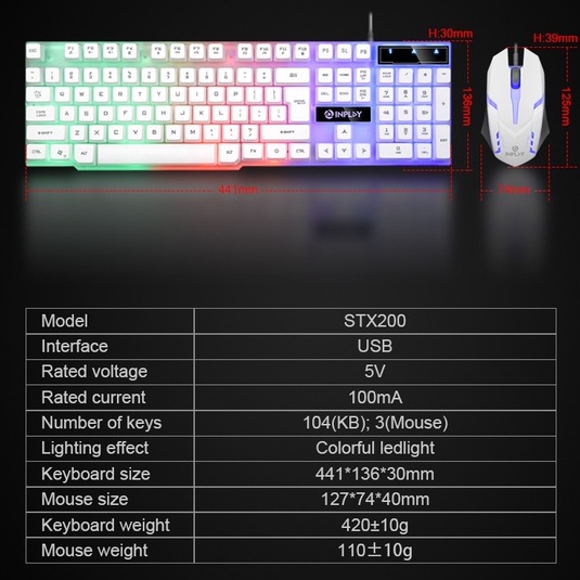 INPLAY STX200 Rainbow Backlit Gaming Keyboard and Mouse (USB) Computer PC Keyboard and Mouse