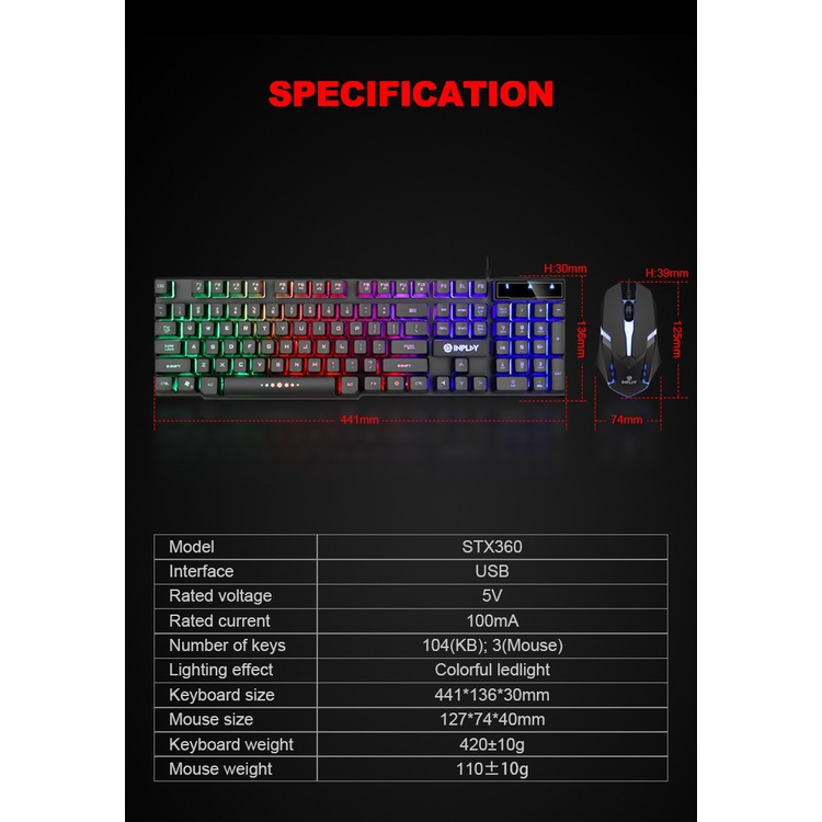 INPLAY STX360 PH ready stock Rainbow Backlit Gaming Keyboard and Mouse (USB) keyboard mouse combo