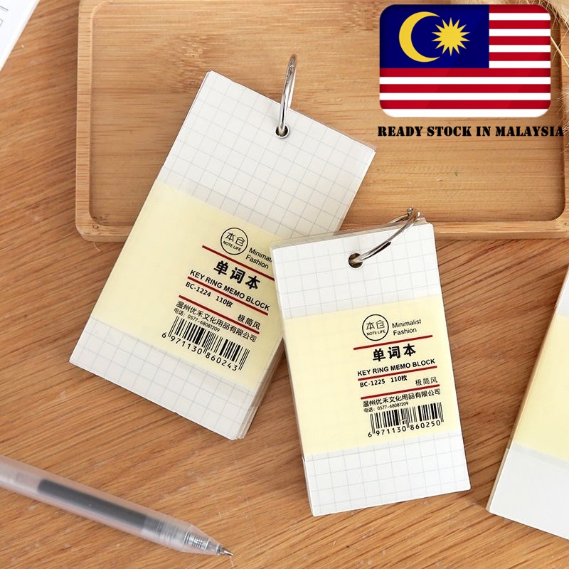 INS Minimalist Metal Ring Memo Block Portable Note Vocabulary Word Learning Flash Cards Teaching Student School Office