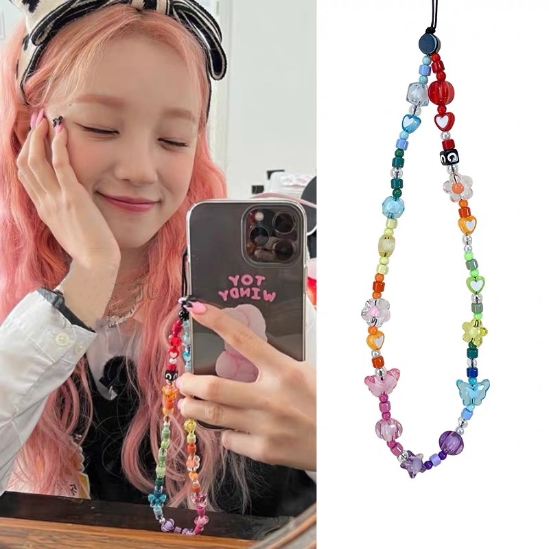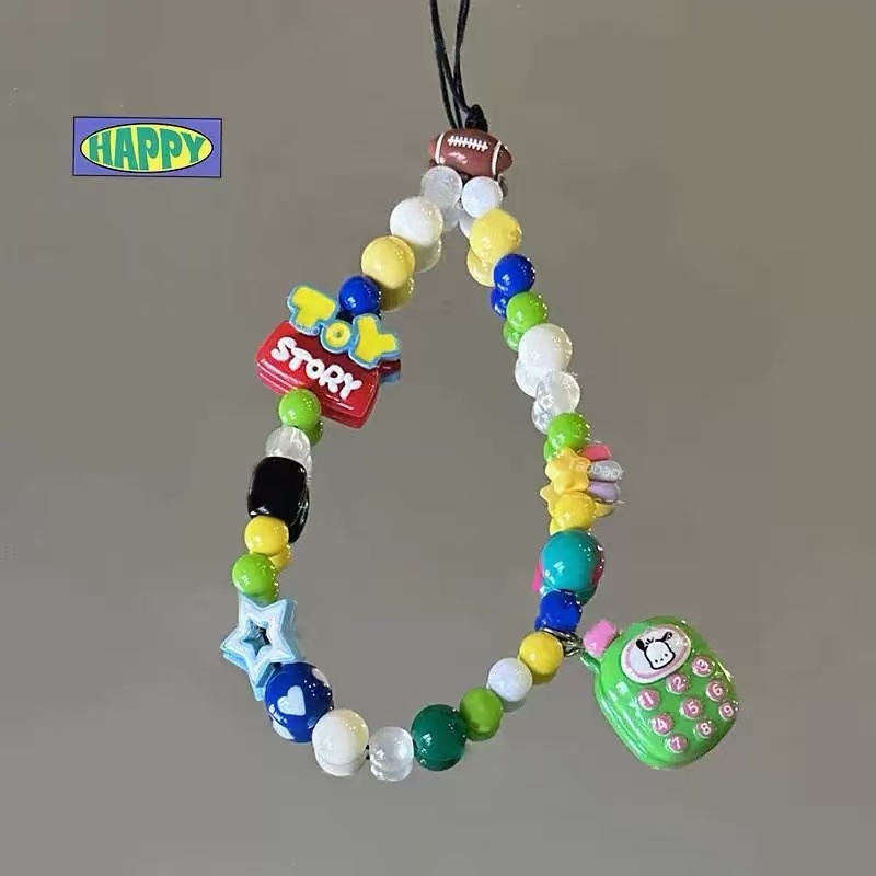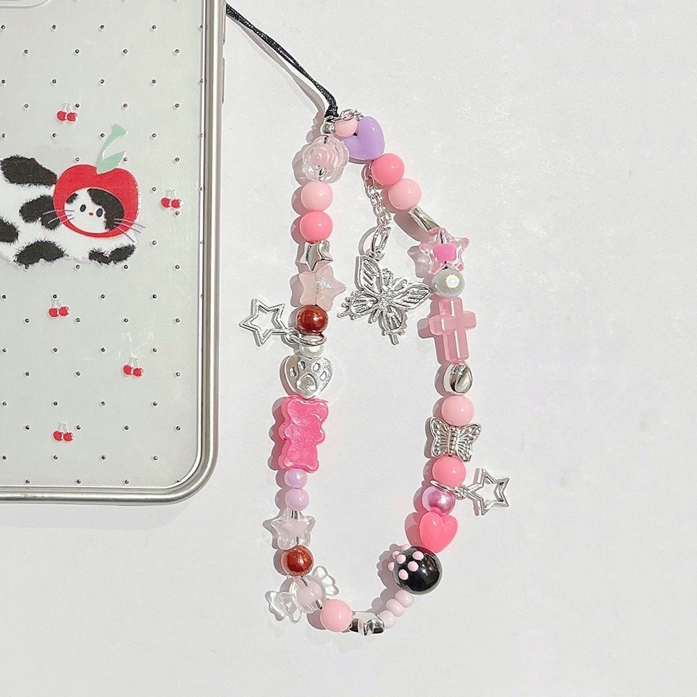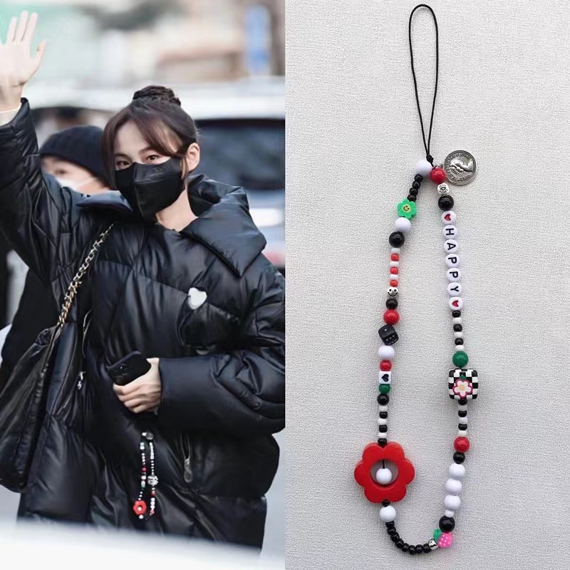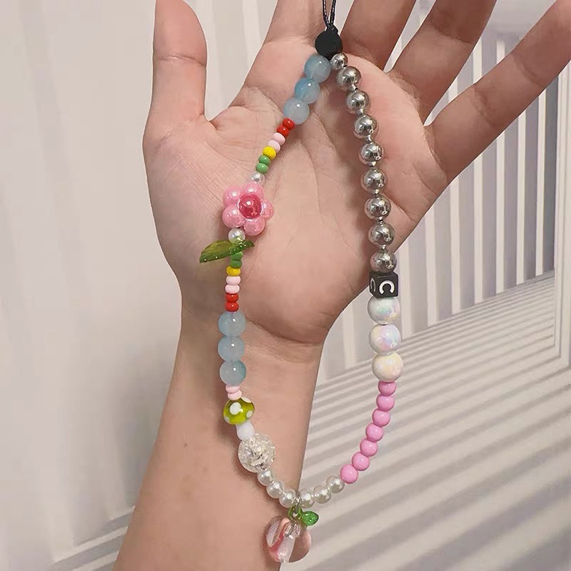 INS Mobile Phone Rope Chain C Home Chain cute chain phone rope strap kpop accessories Silver Pendant Beaded Bracelet key chain ig decoration lanyard