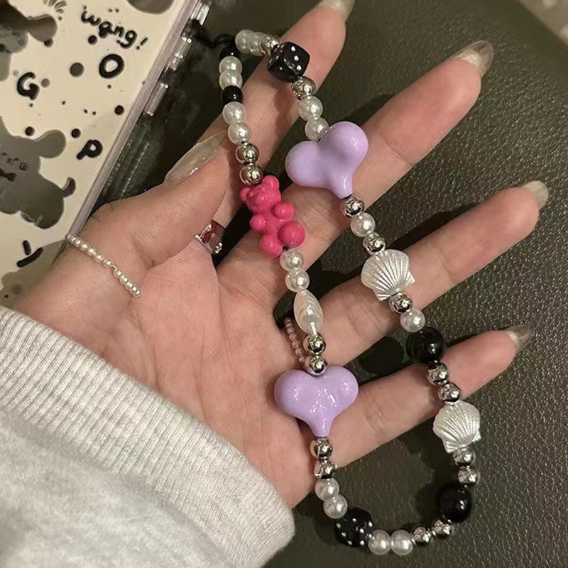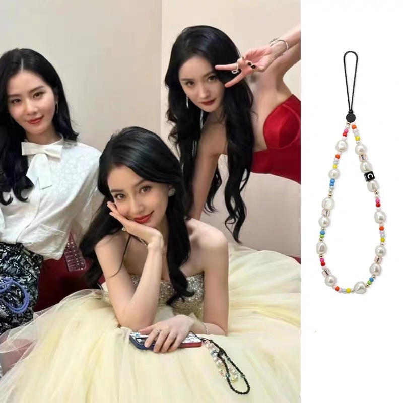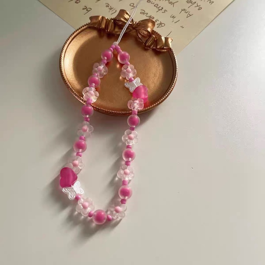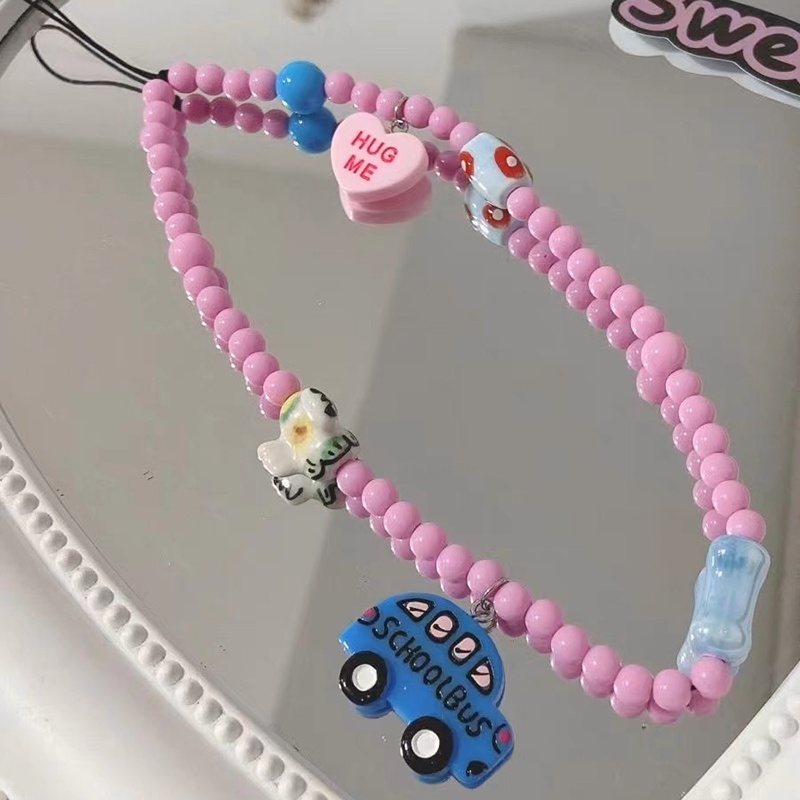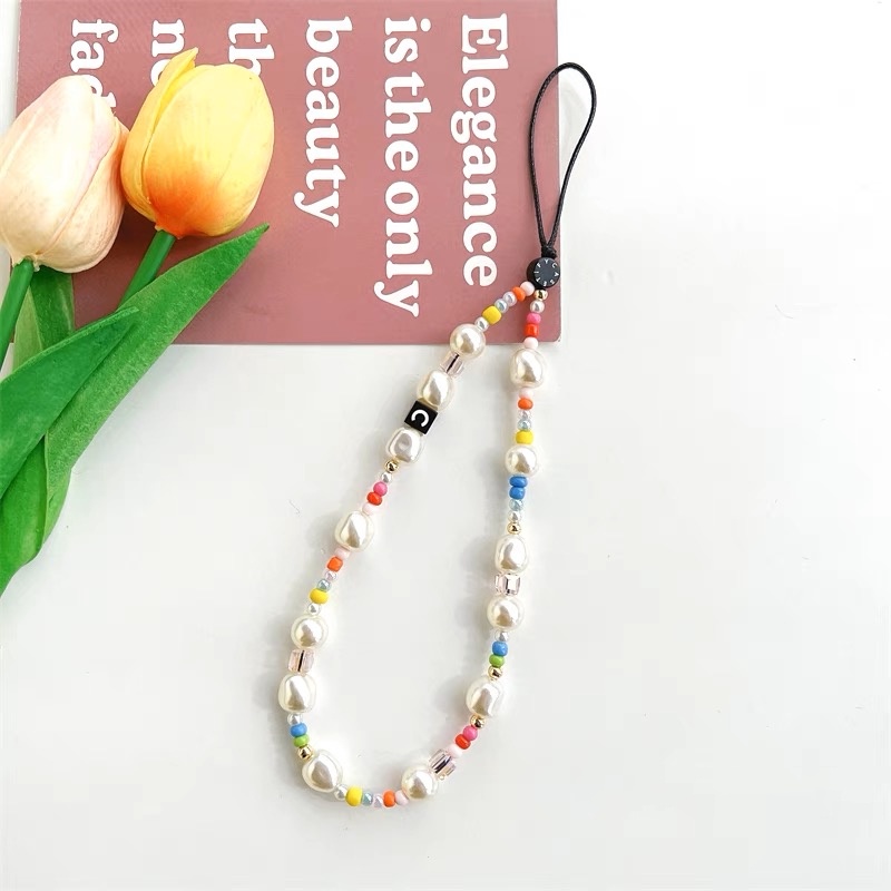 INS Mobile Phone Rope Chain C Home Chain cute chain phone rope strap kpop accessories Silver Pendant Beaded Bracelet key chain ig decoration lanyard