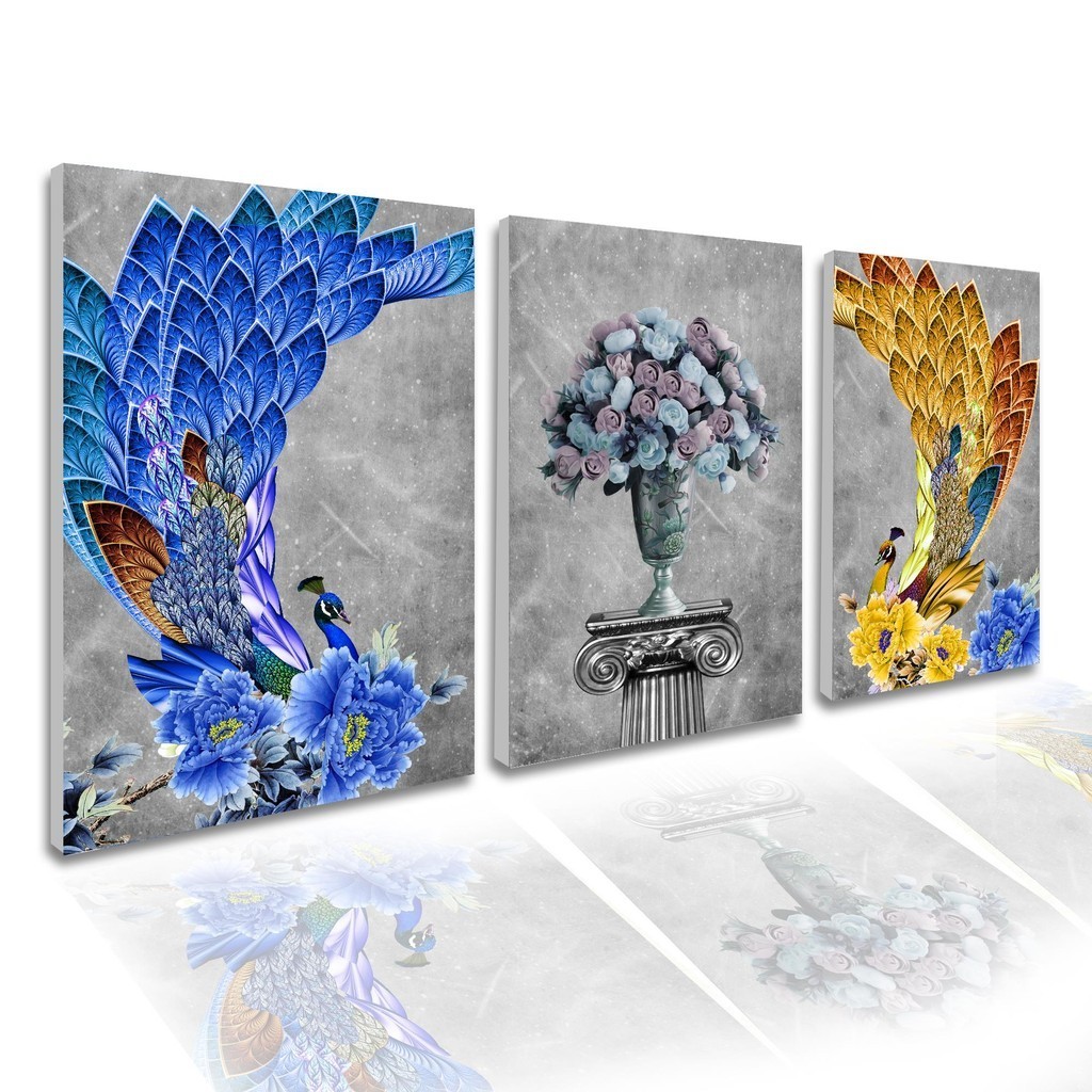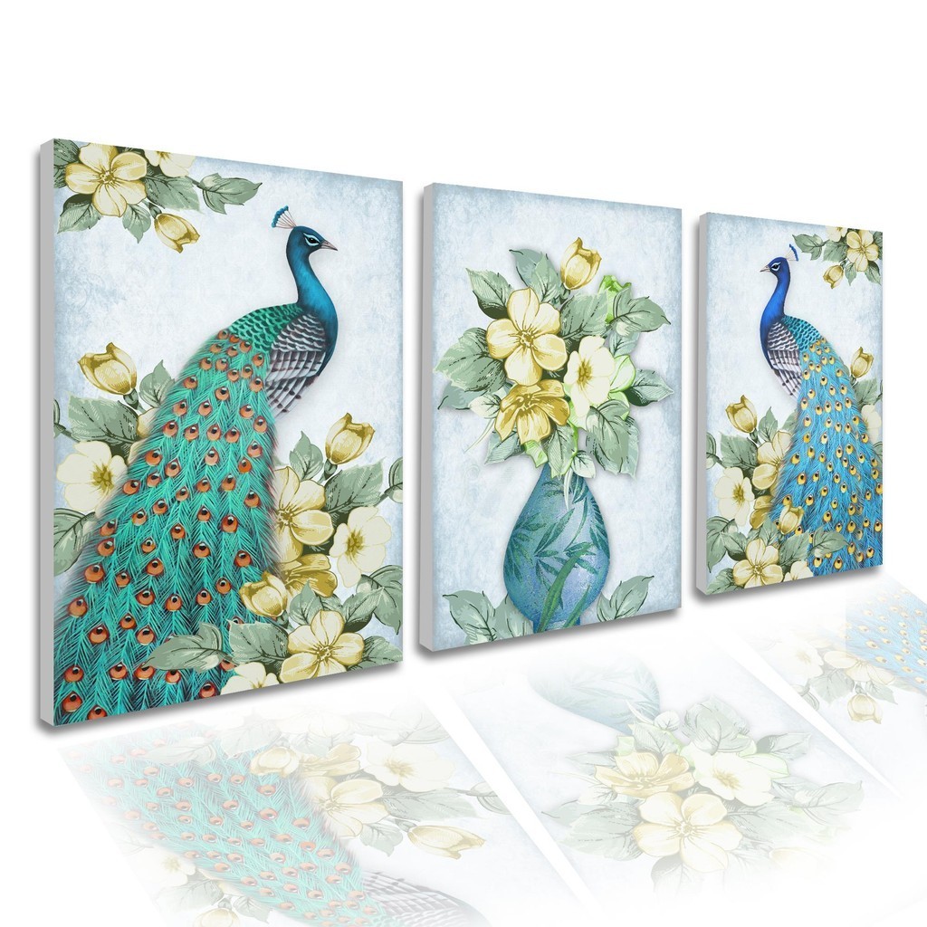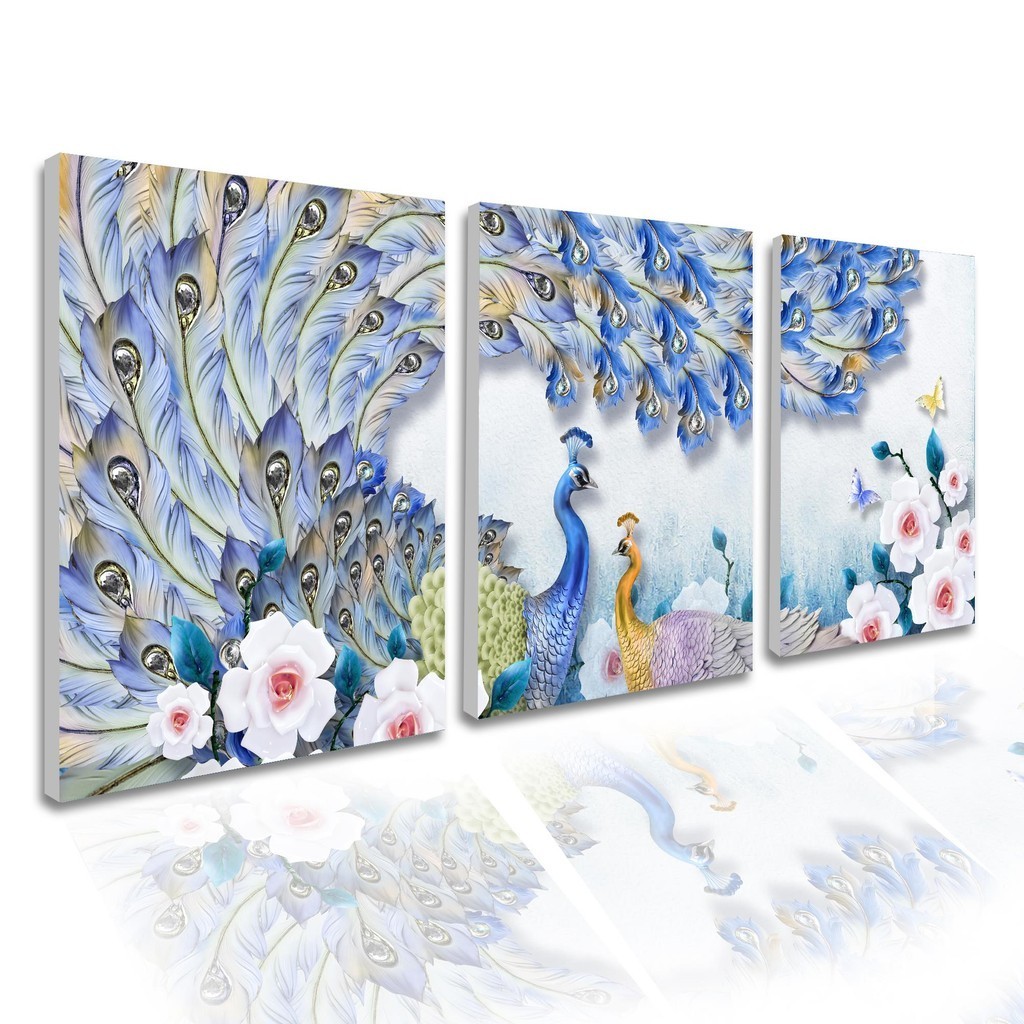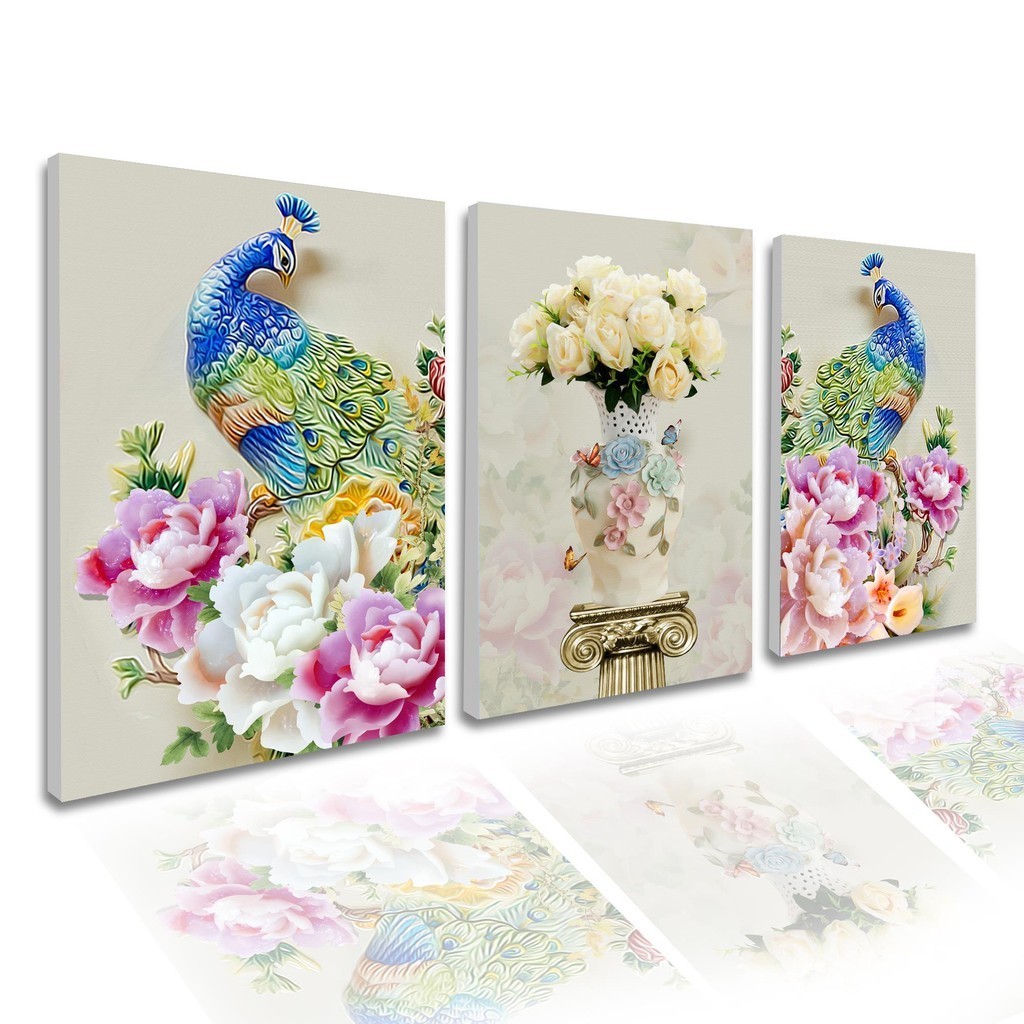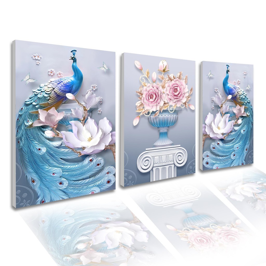 INS Peacock 3D Aesthetic Wall Decoration Affordable Peacock Art Painting (SET 3PCS PEACOCK FRESCOS)