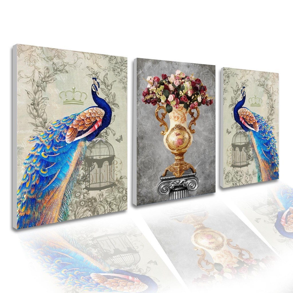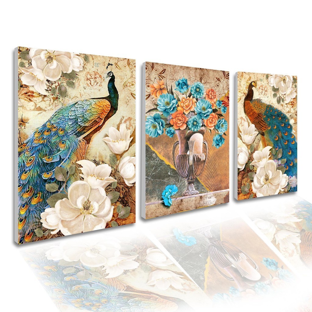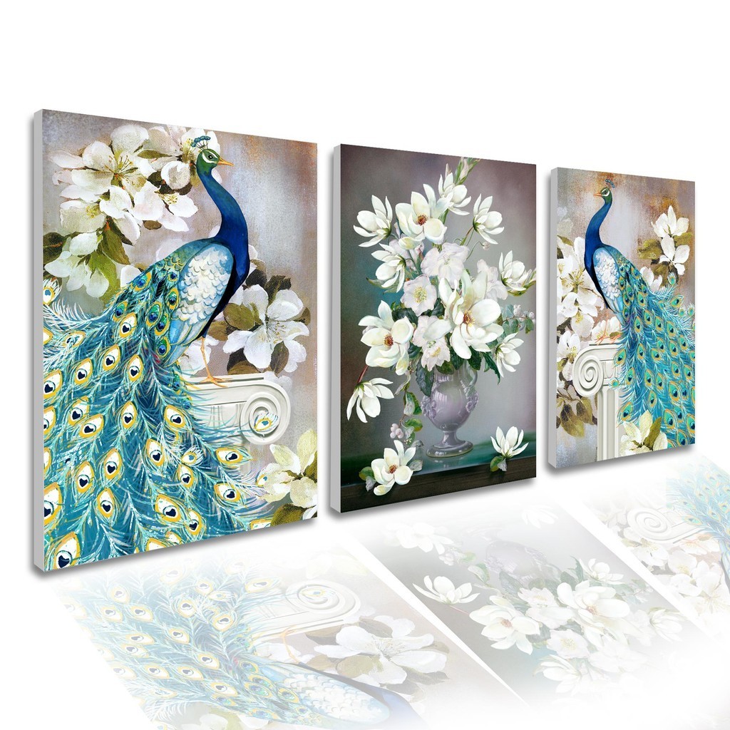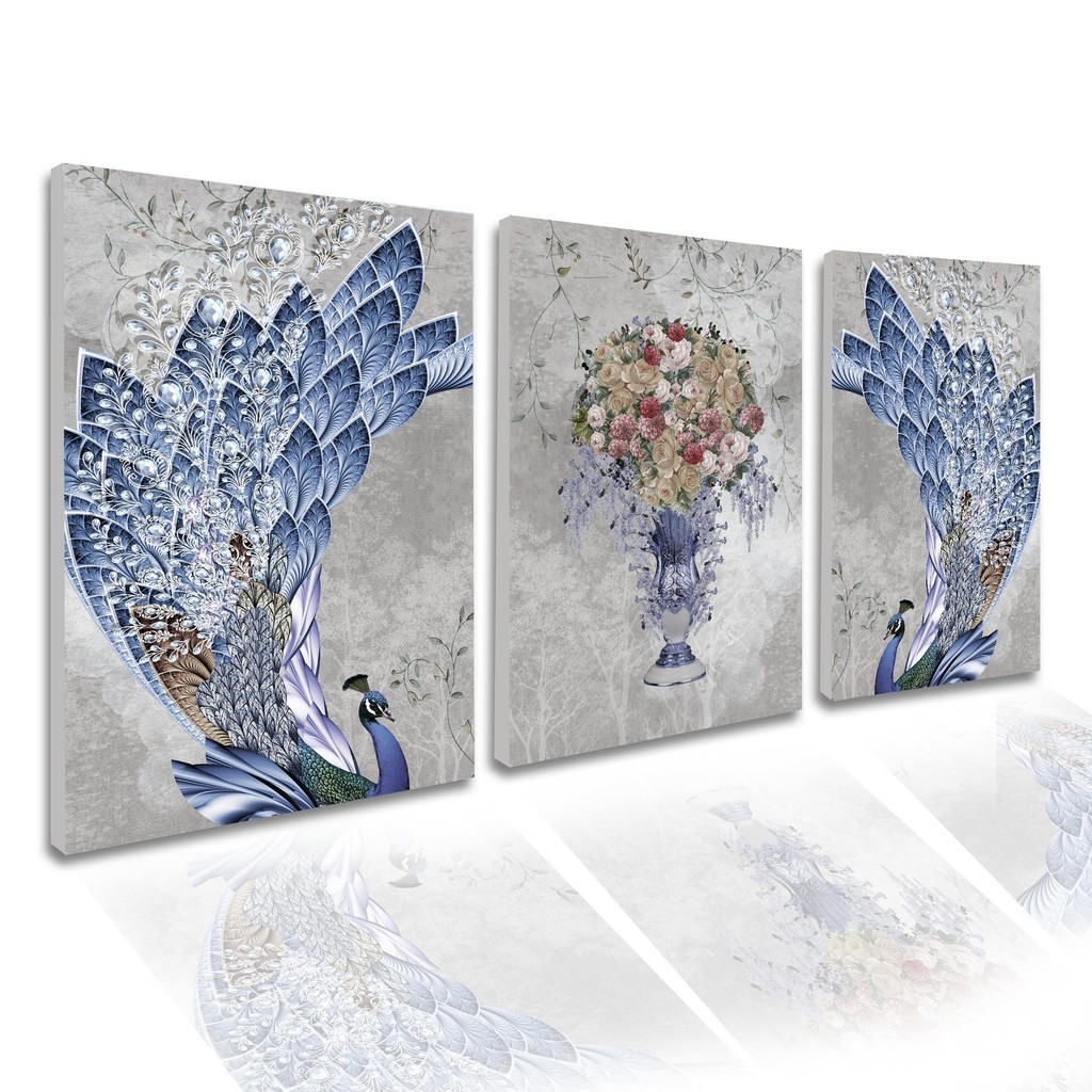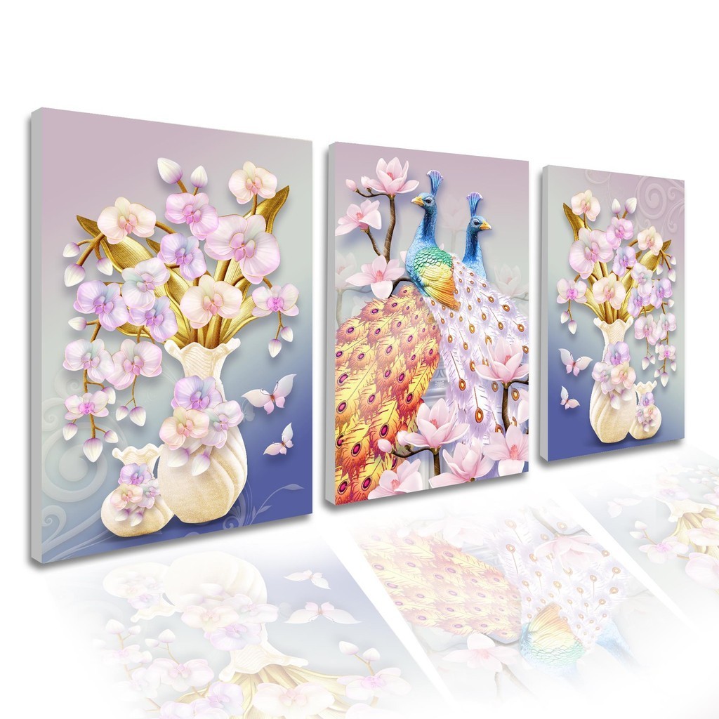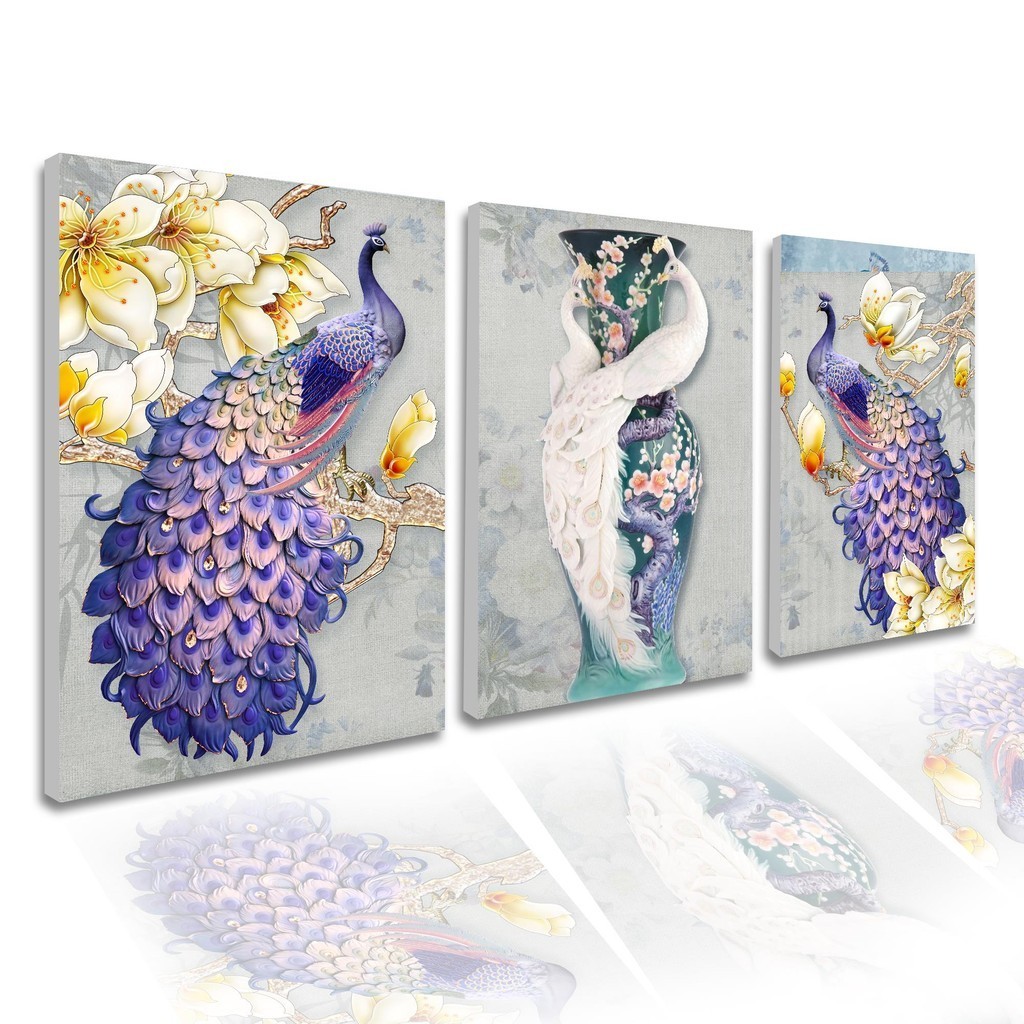 INS Peacock 3D Aesthetic Wall Decoration Affordable Peacock Art Painting (SET 3PCS PEACOCK FRESCOS)