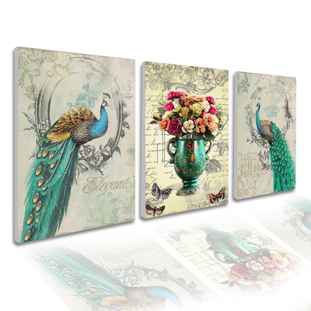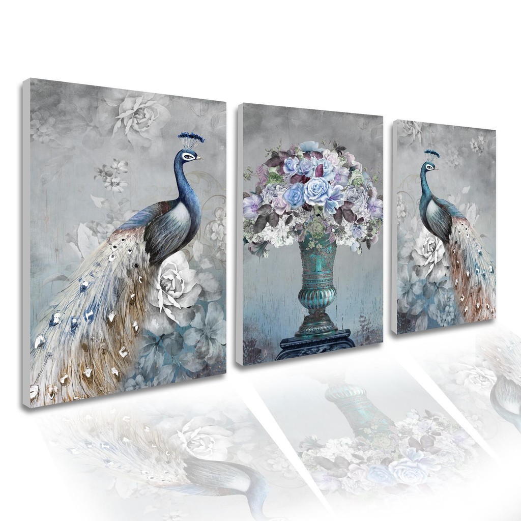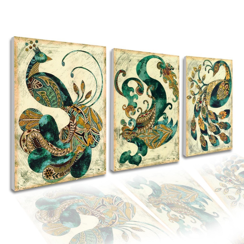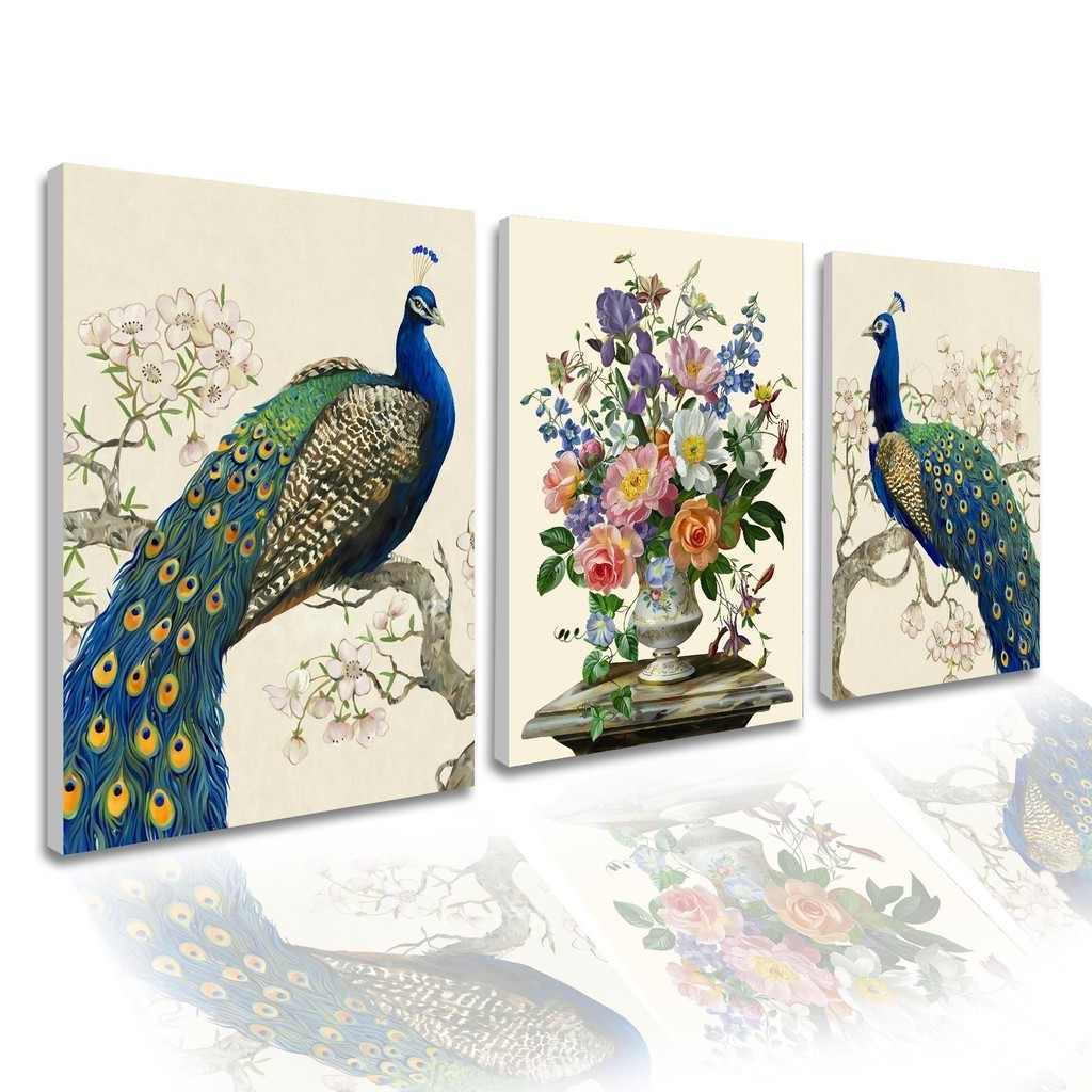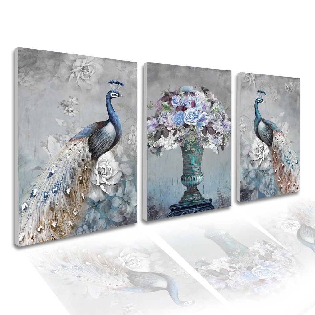 INS Peacock 3D Aesthetic Wall Decoration Affordable Peacock Art Painting (SET 3PCS PEACOCK FRESCOS)