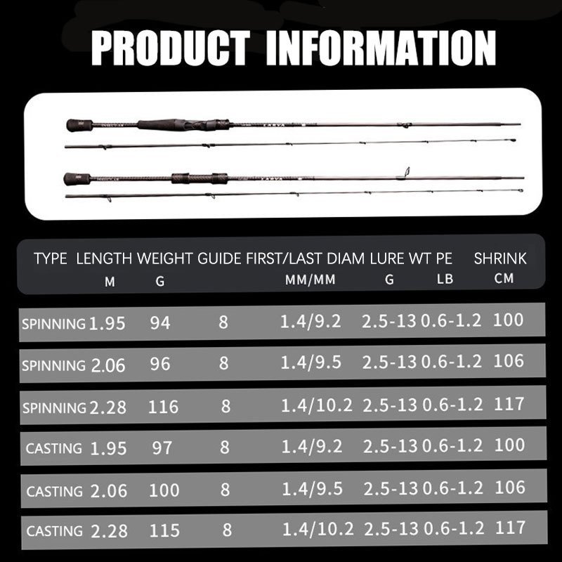 INSECT-AR 2.06m/2.28m Light Action Fishing Rod Full Hollow Carbon Tip Part Flexible Spinning Rod Prawn Baitcasting Rod