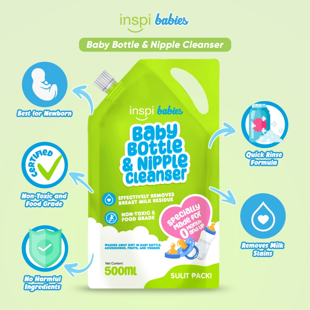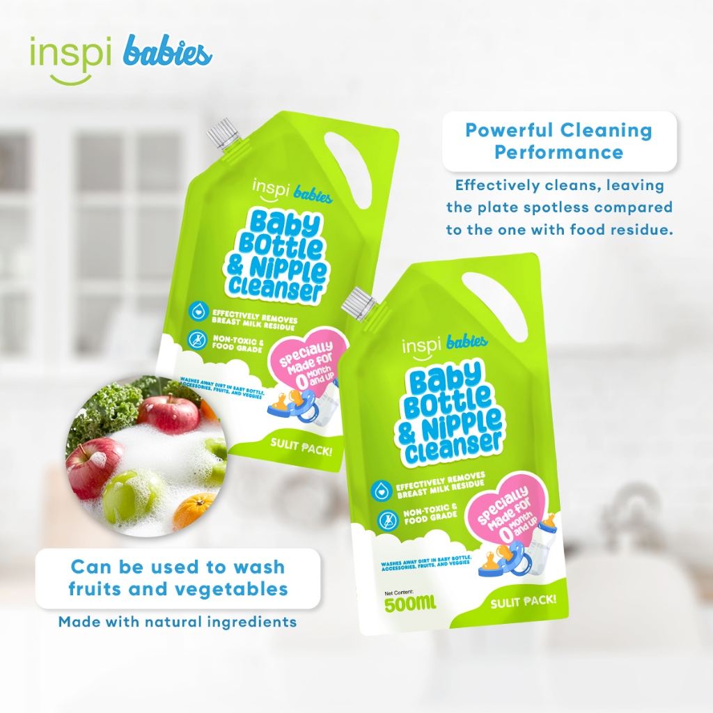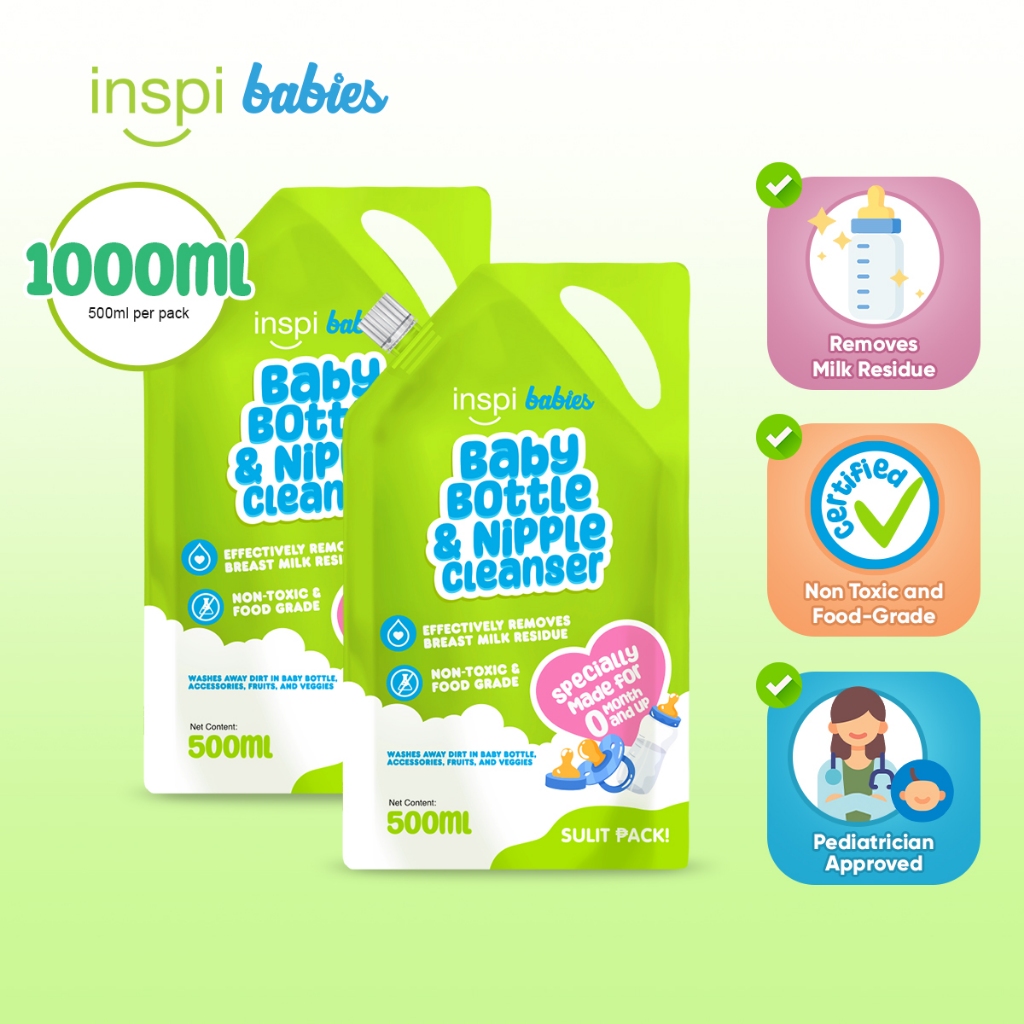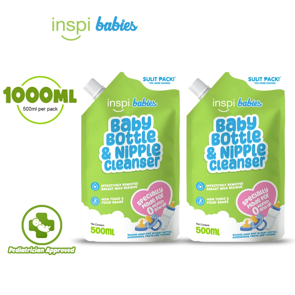 INSPI Babies Bottle & Nipple Cleanser for Babies Refill Pack of 2 (500ml each) - Non-toxic Solution