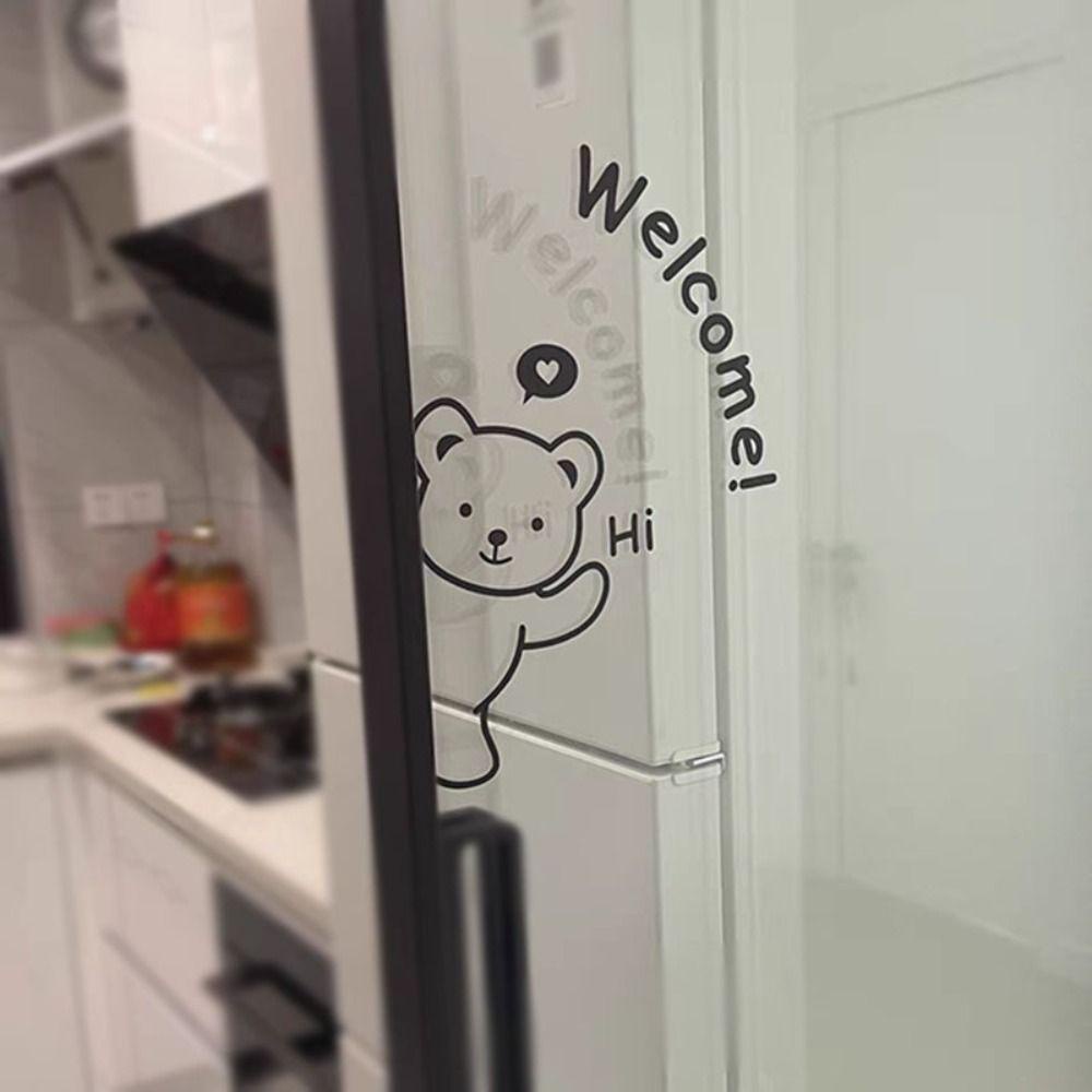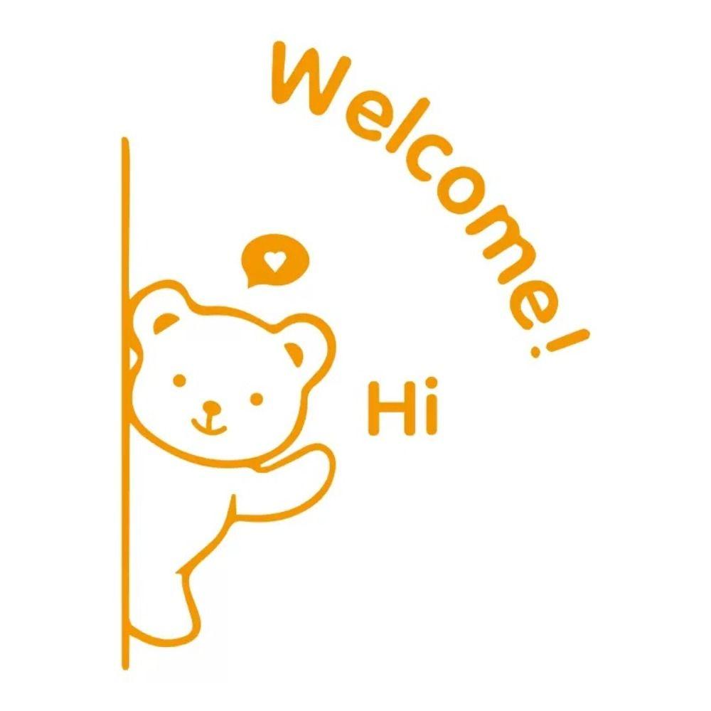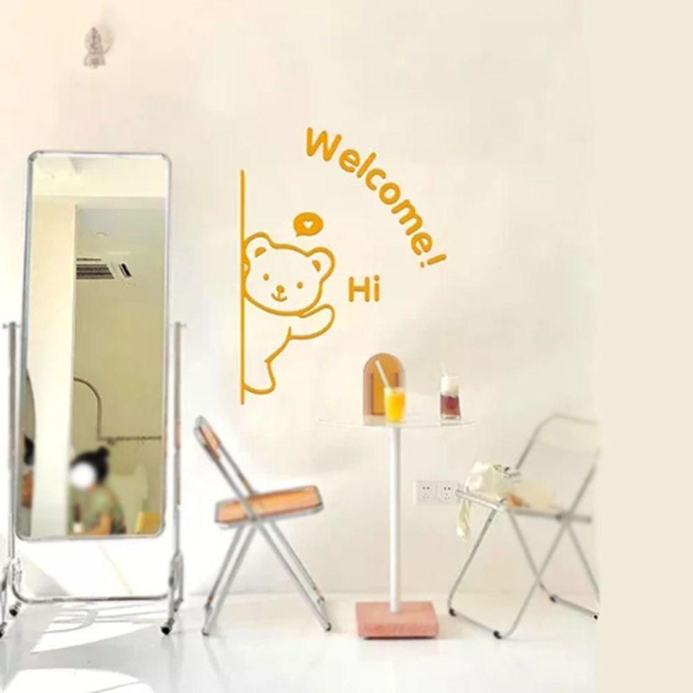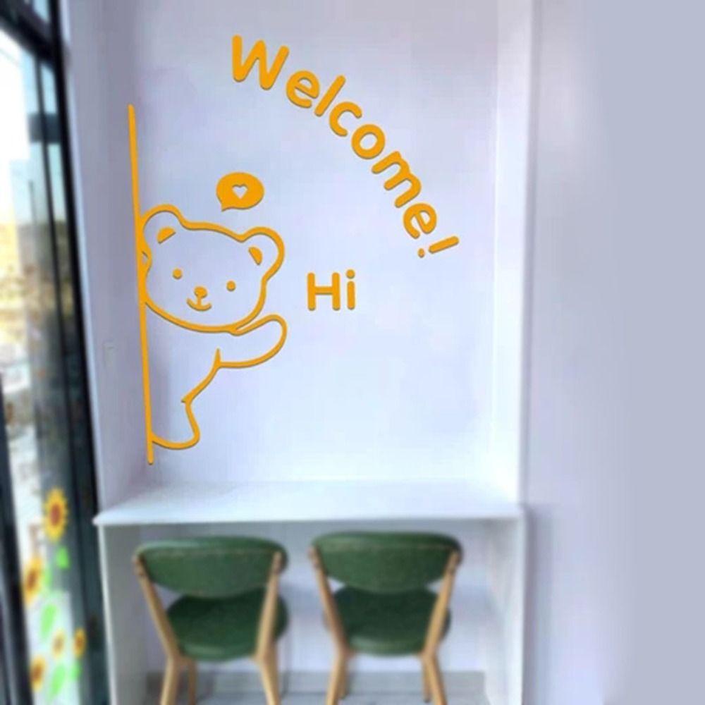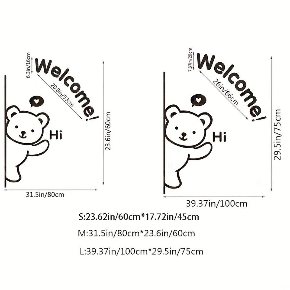 INSTORE Welcome Bear Stickers, Self-adhesive Artwork Welcome Wall Decal, Cute Crafts PVC Cartoon Bear Signs Ornaments Milk Tea Shop