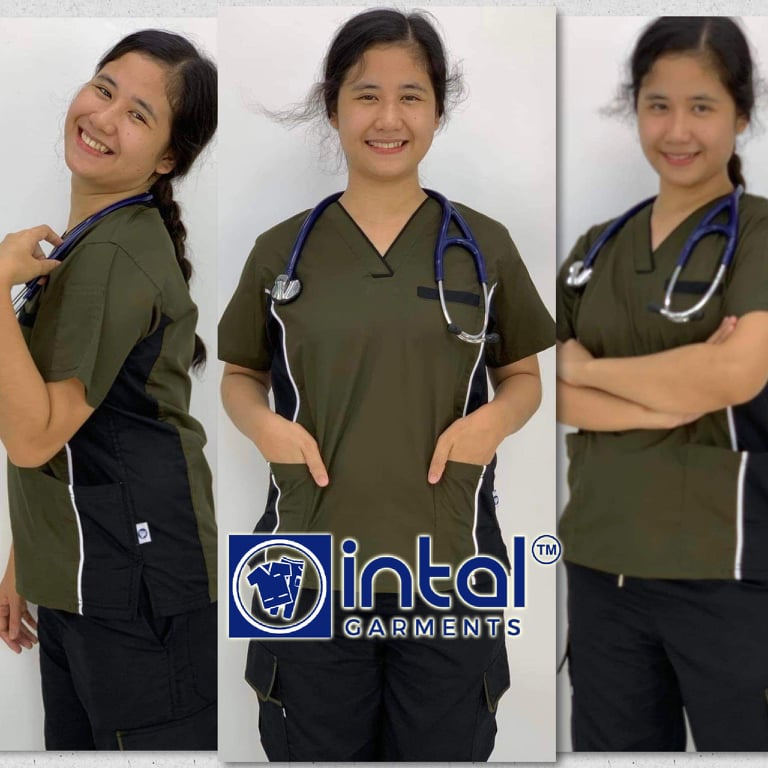 INTAL SCRUBSUIT 06C CARGO 6-Pocket Pants Premium Quality V-Neck Unisex Scrubs (Blue, Army Green)